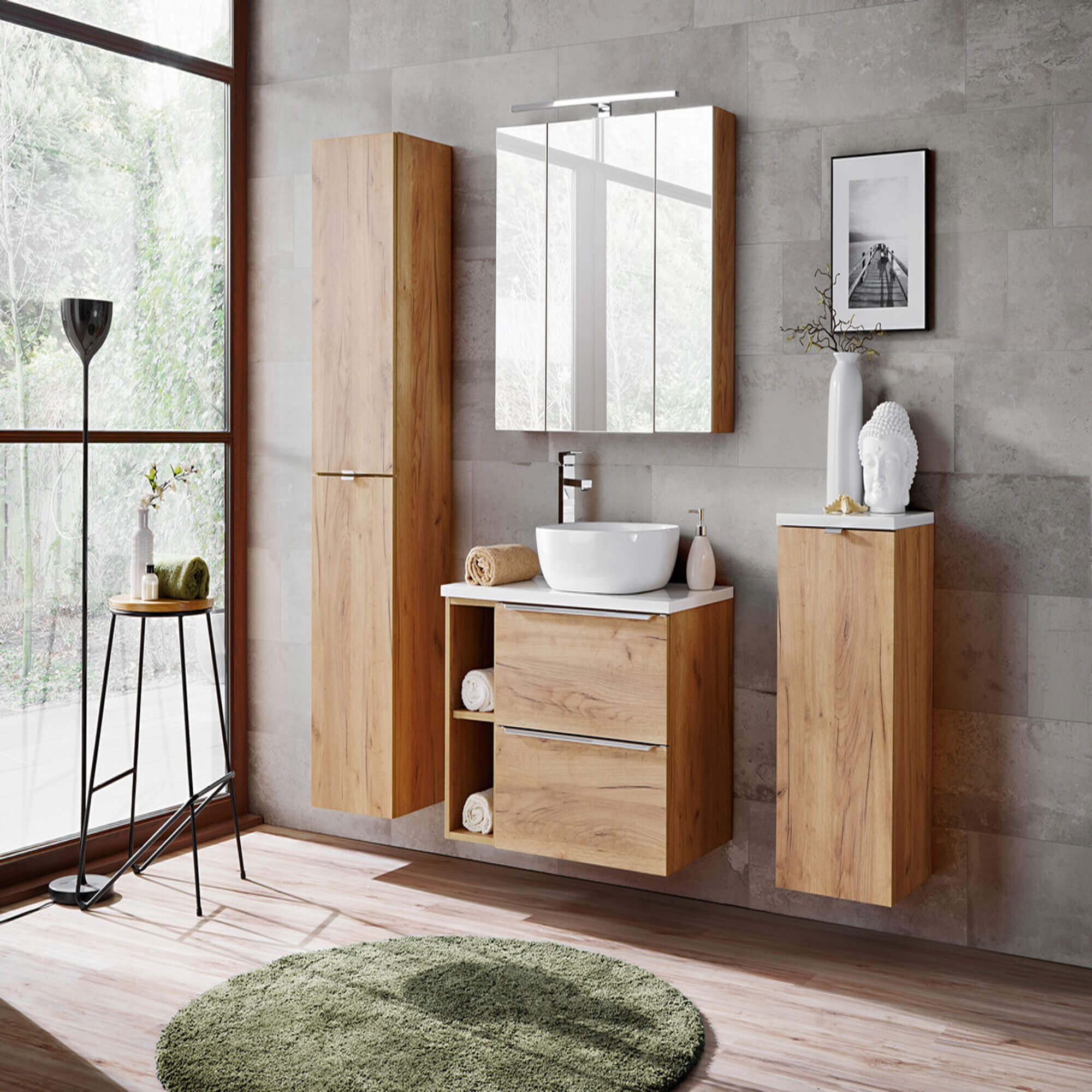 Szafka z Lustrem 80cm 3 Drzwi | Kolekcja Capri Oak | Dąb Złoty Craft