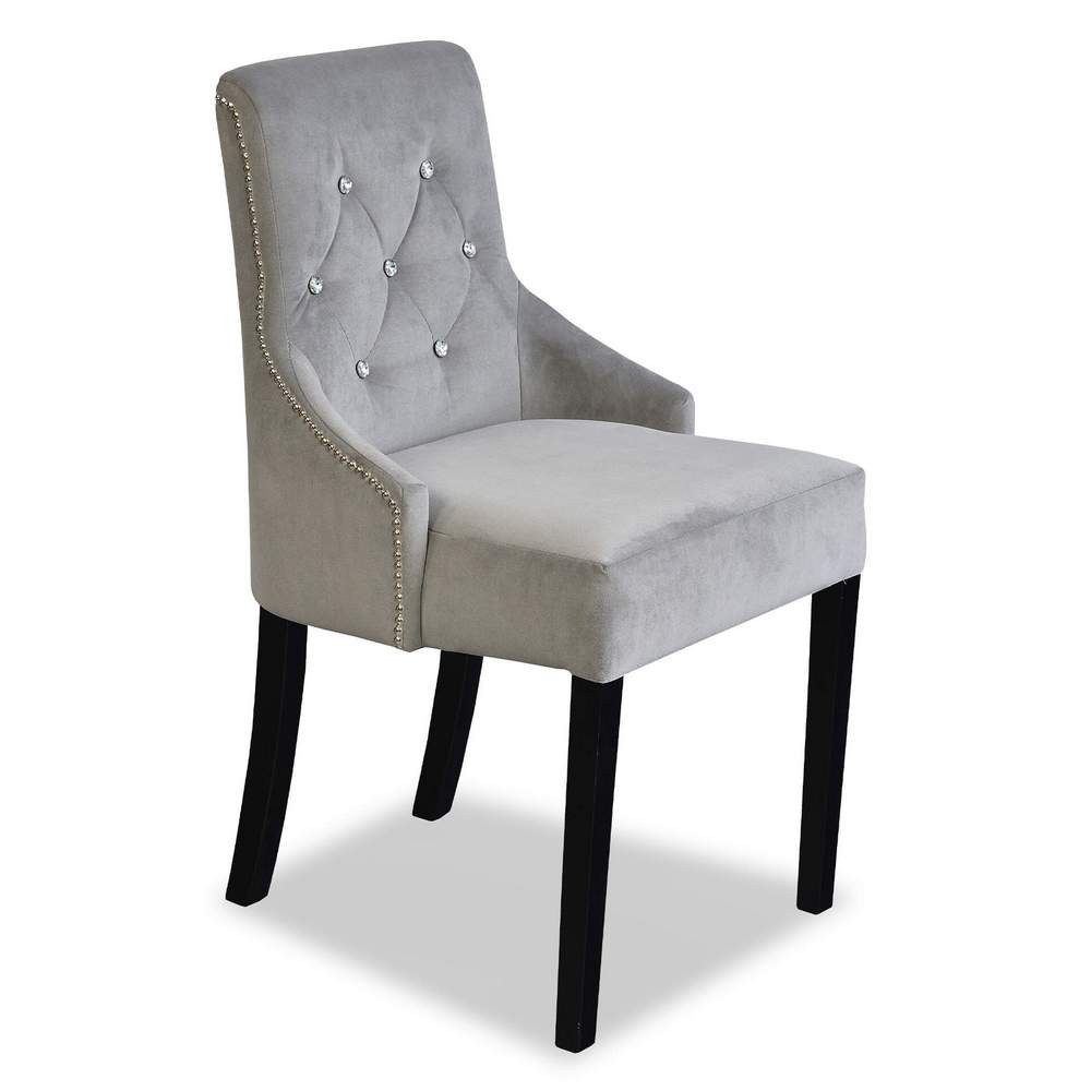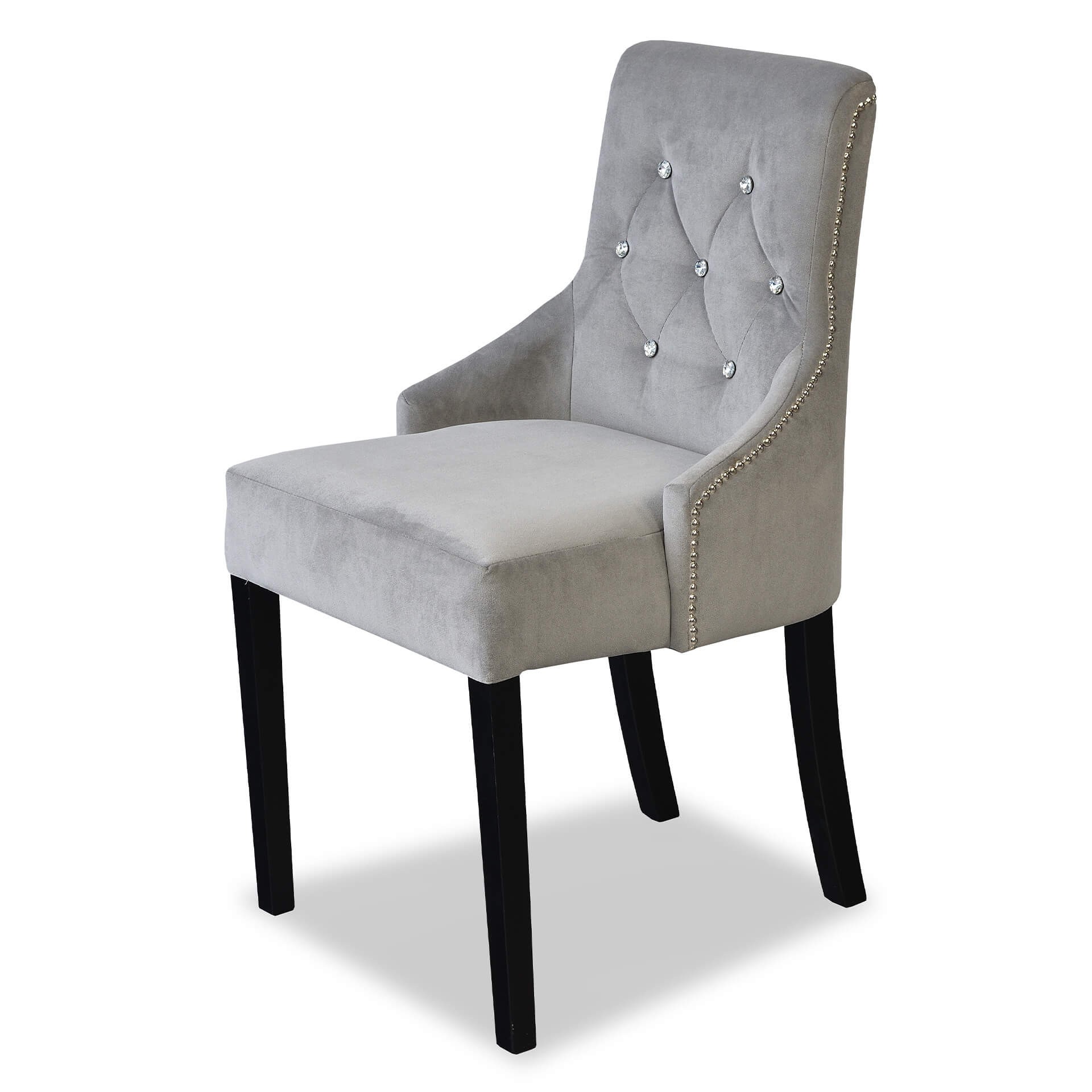 Krzesło do jadalni z kołatką i kryształkami jest idealne do wnętrz Glamour, art deco i pomieszczeń, w której elegancja zachwyca od progu. Krzesło jest absolutnym hitem, gdyż wyjątkowe detale zdobiące krzesło nadają mu ekskluzywnego, królewskiego stylu.