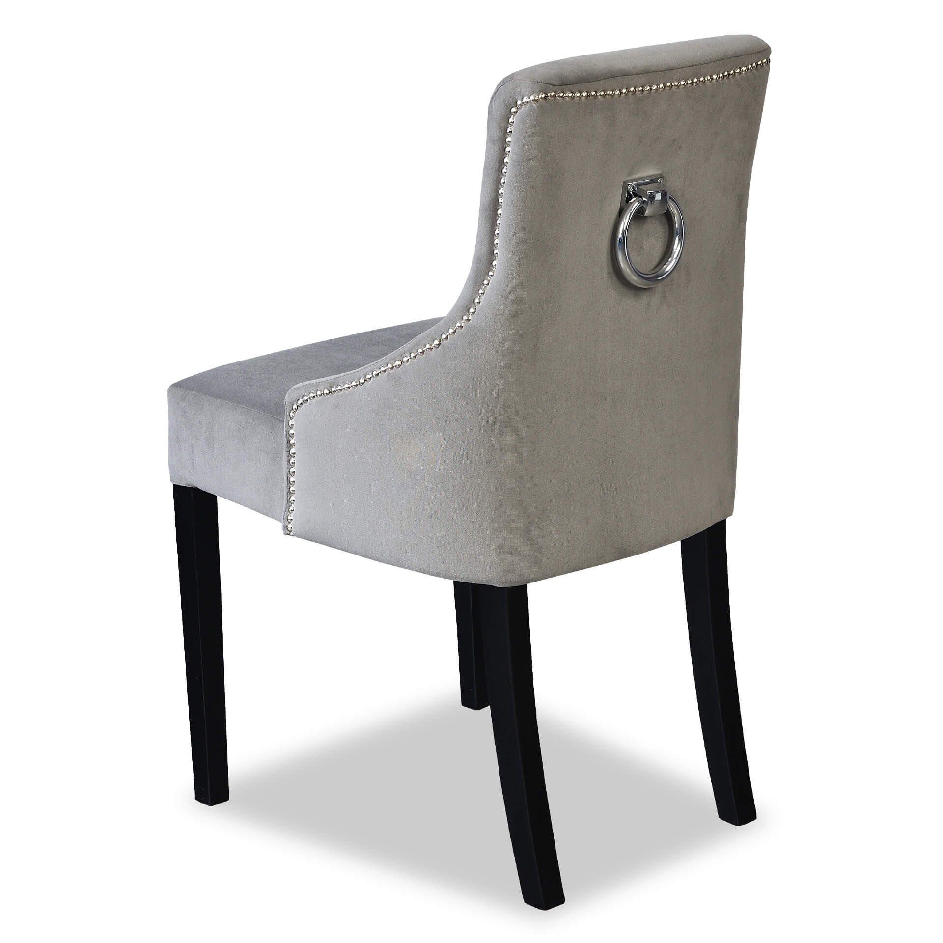 Kołatka umieszczona z tyłu oparcia sprawia, że krzesło do jadalni prezentuje się wybornie z każdej strony. Srebro świetnie komponuje się z prezentowanym kolorem, ale końcowy wygląd krzesła pozostawiamy Tobie!