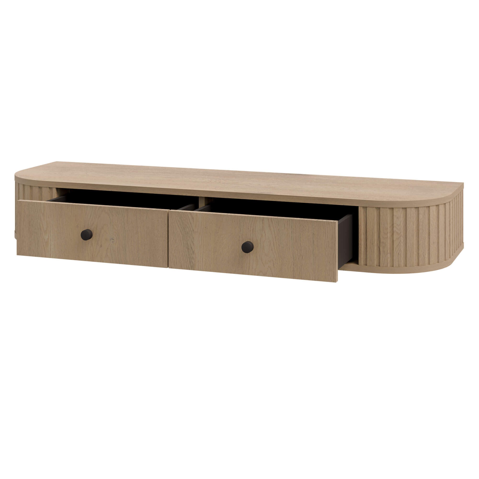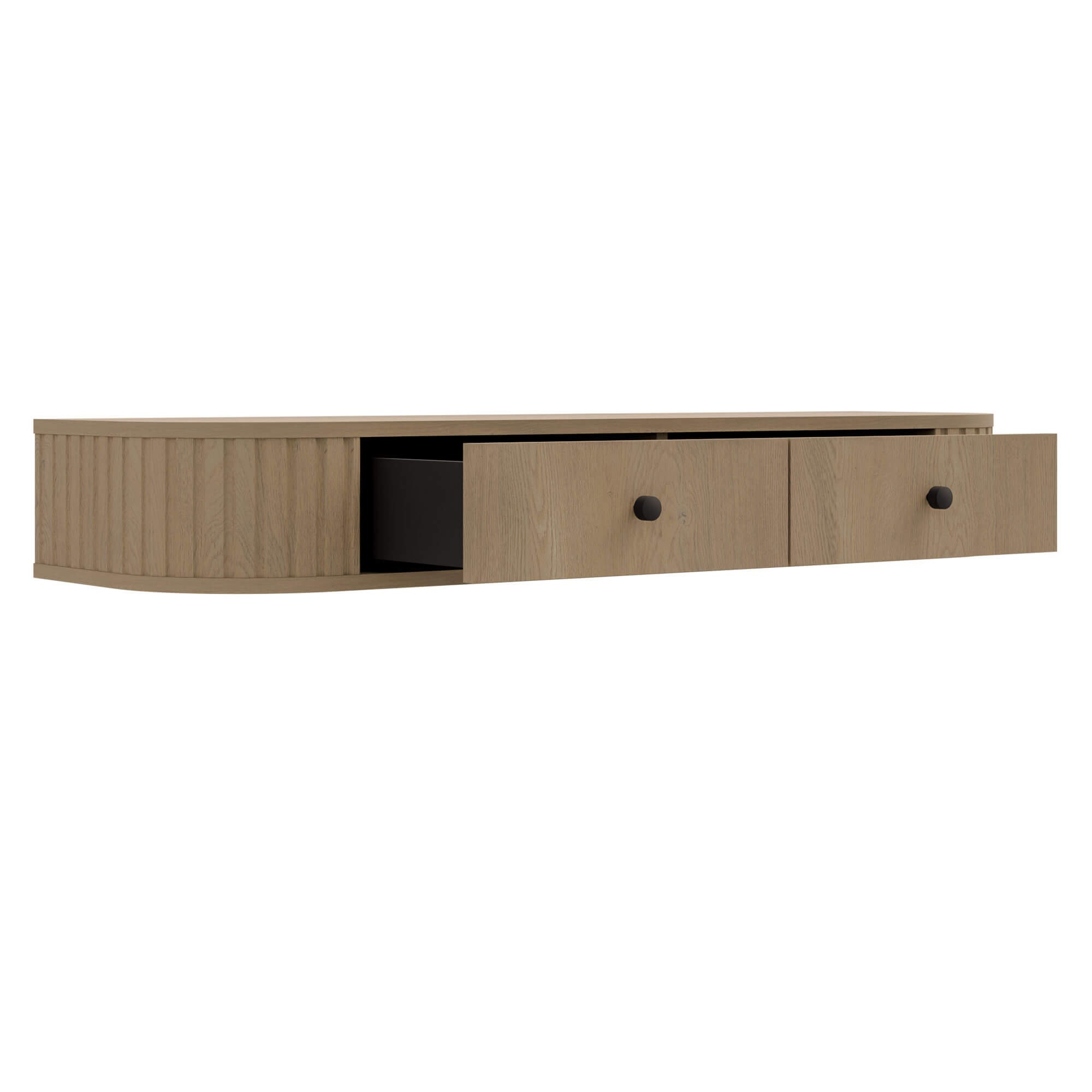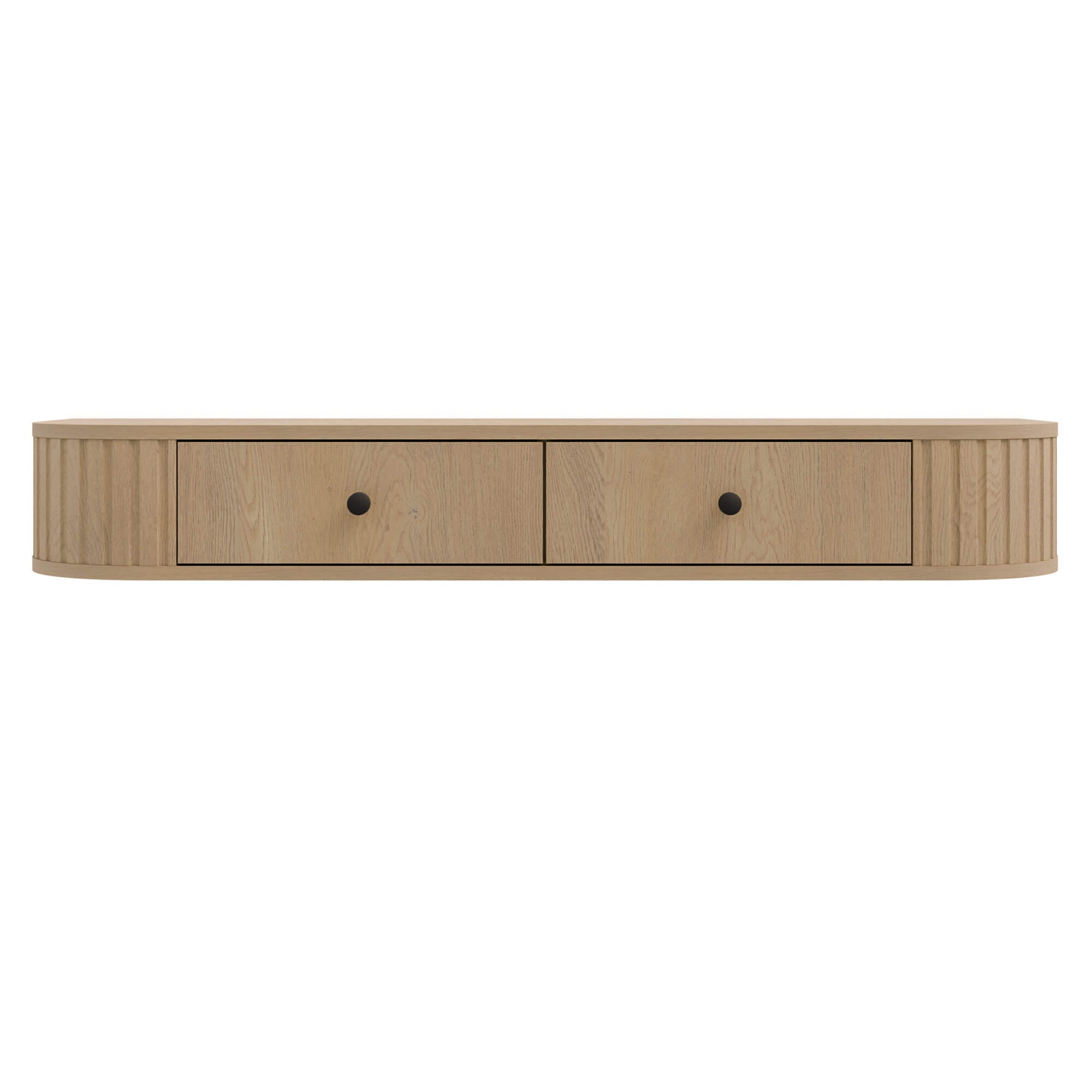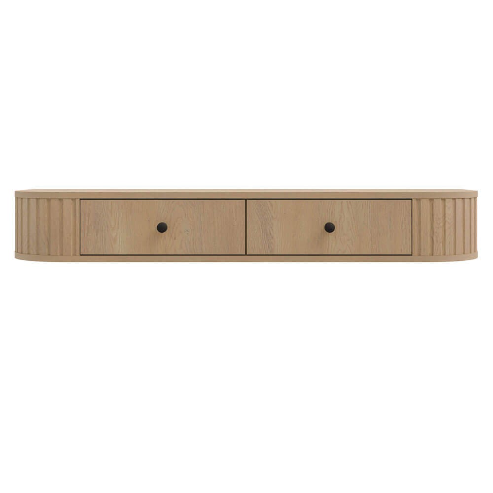 Toaletka została wyposażona w dwie praktyczne szuflady, które pomieszczą kosmetyki, biżuterię, dokumenty lub inne drobiazgi. Szeroki blat zapewnia wygodne miejsce do codziennej pielęgnacji i makijażu, a po zestawieniu z lustrem tworzy komfortową strefę beauty. Dzięki kompaktowej wysokości mebel może pełnić również funkcję konsoli do przedpokoju lub nowoczesnej półki ściennej.