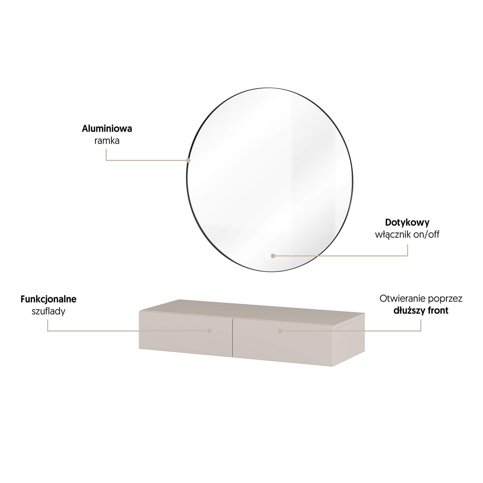 Toaletka kosmetyczna wisząca z lustrem i szufladami JUKON S | Cashmere
