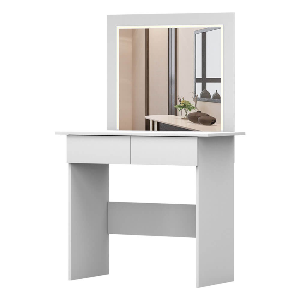 Toaletka kosmetyczna biała z lustrem i LED
