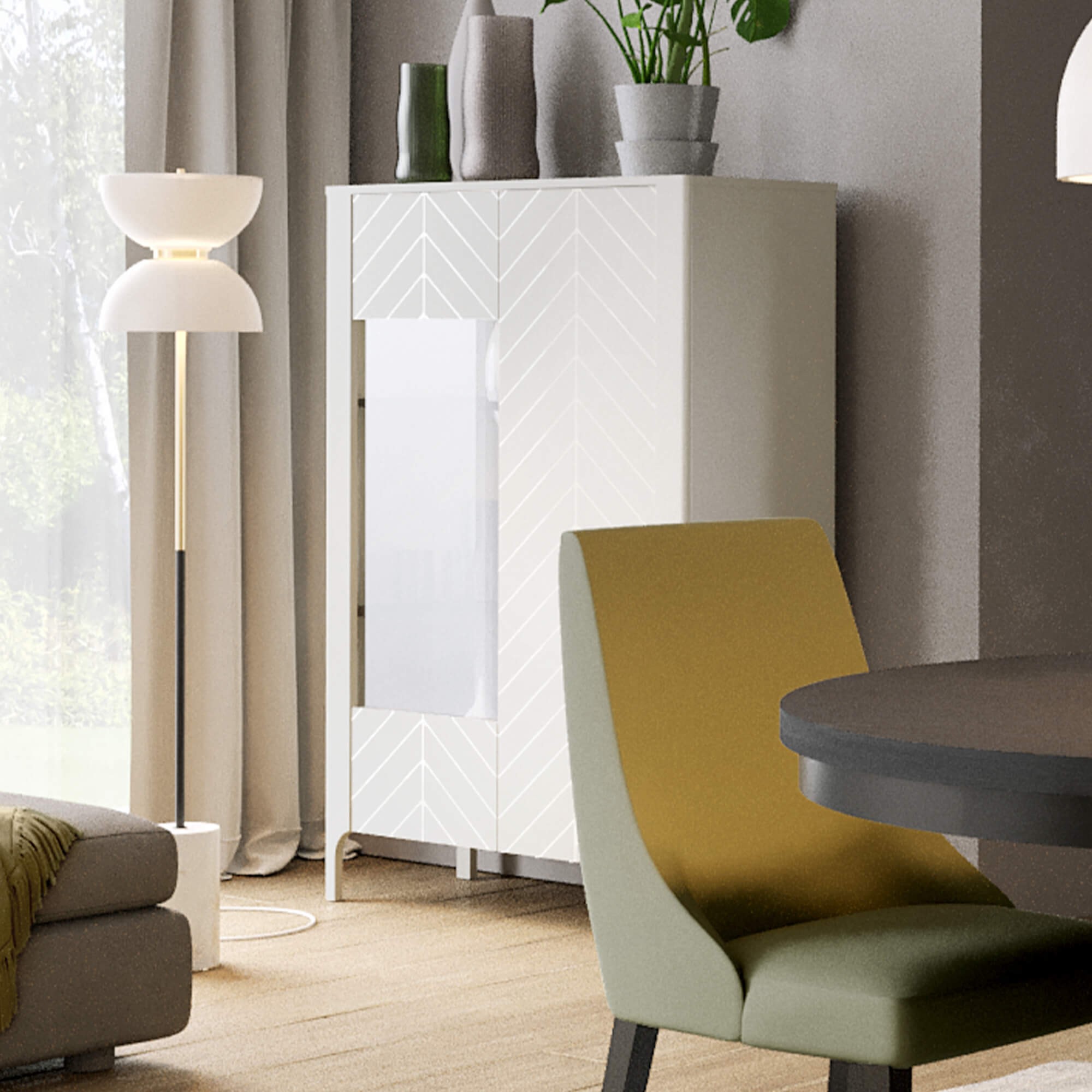 Dzięki wysokim, 15-centymetrowym nogom, witryna prezentuje się niezwykle smukło, a dostęp do powierzchni pod meblem jest ułatwiony. To doskonały wybór do nowoczesnego salonu, skandynawskiej jadalni czy minimalistycznego gabinetu.