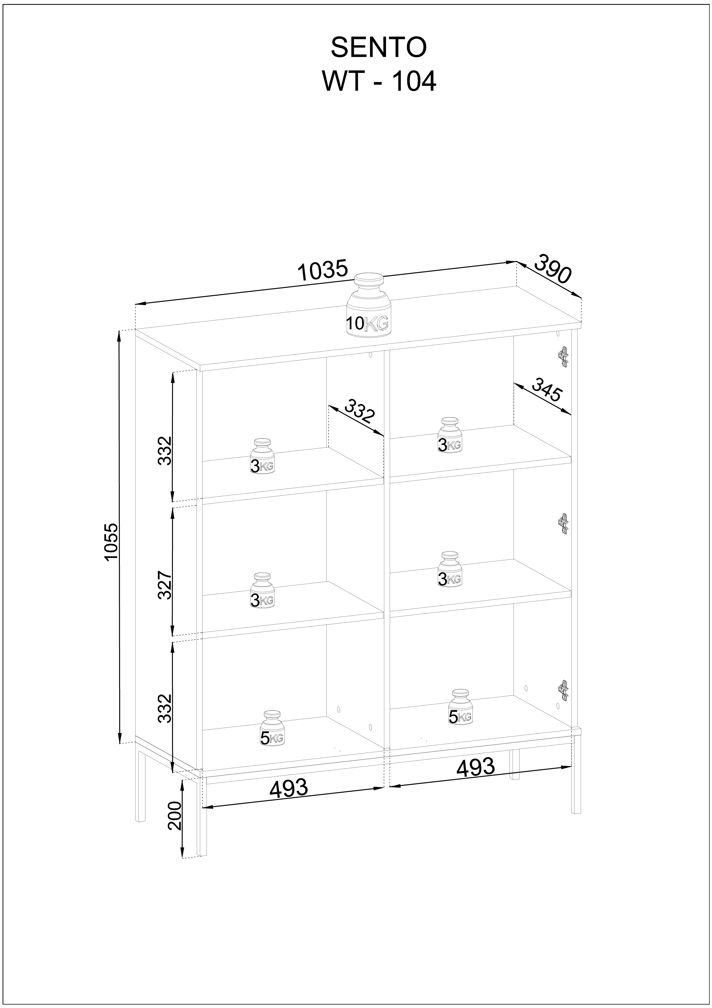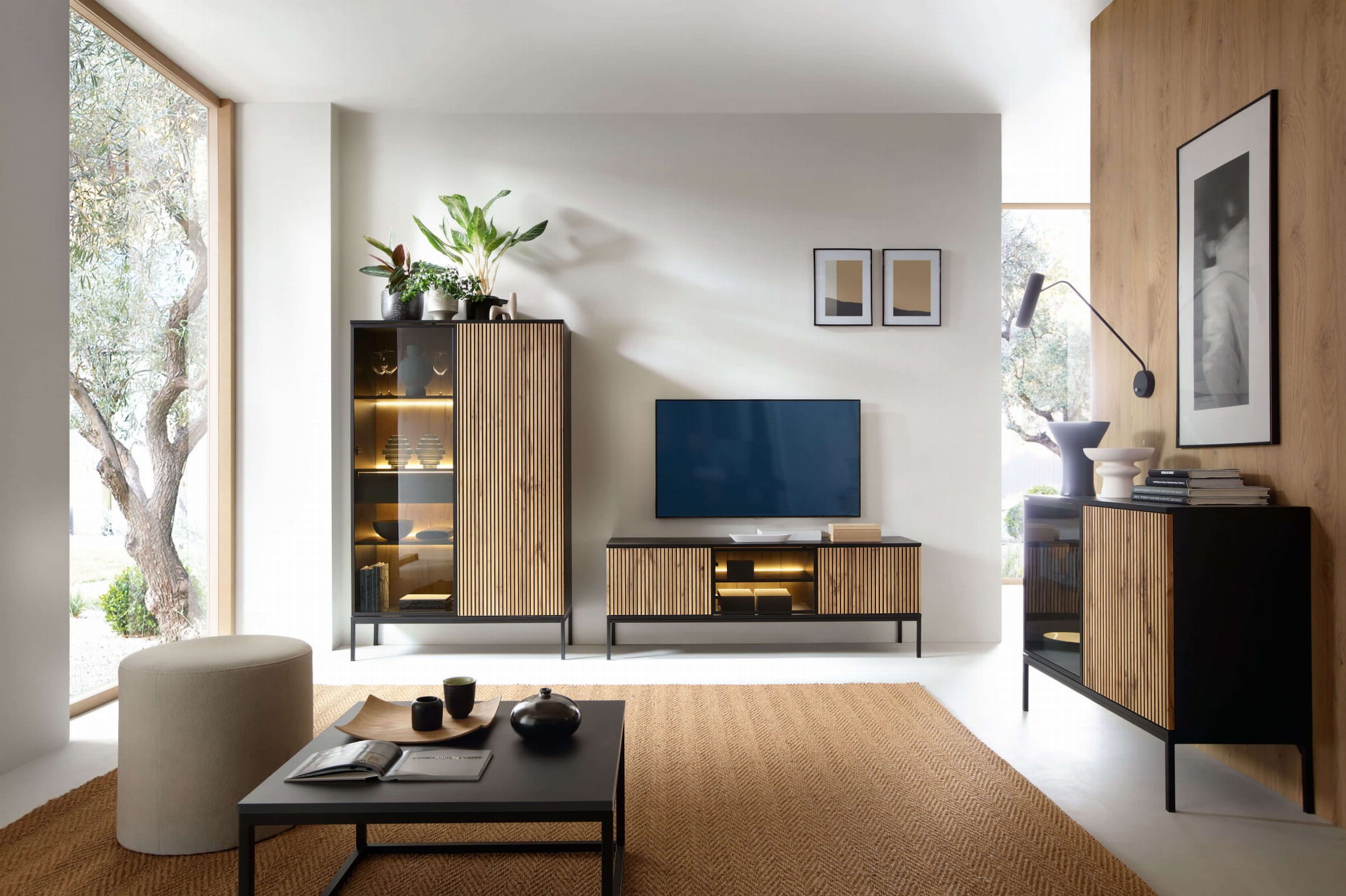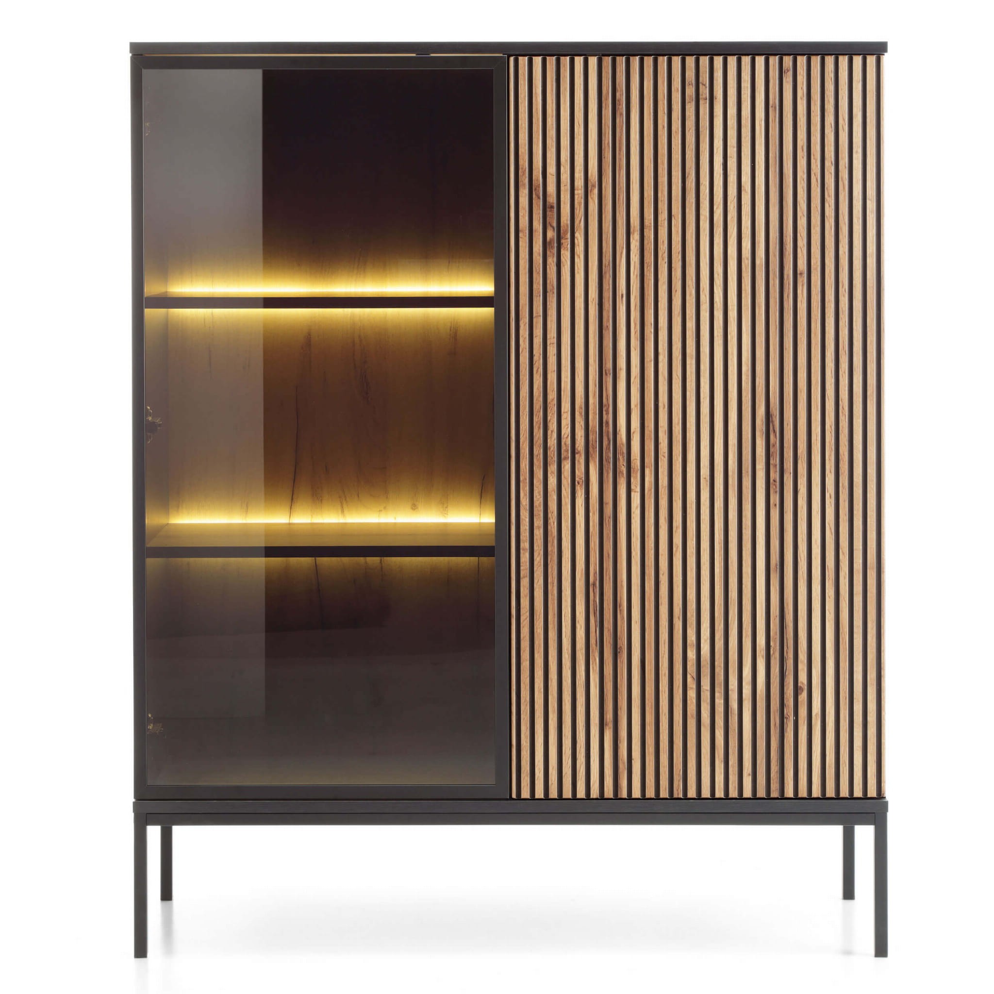Witryna loftowa SENTO WT104 | Lamele dąb wotan, czarny