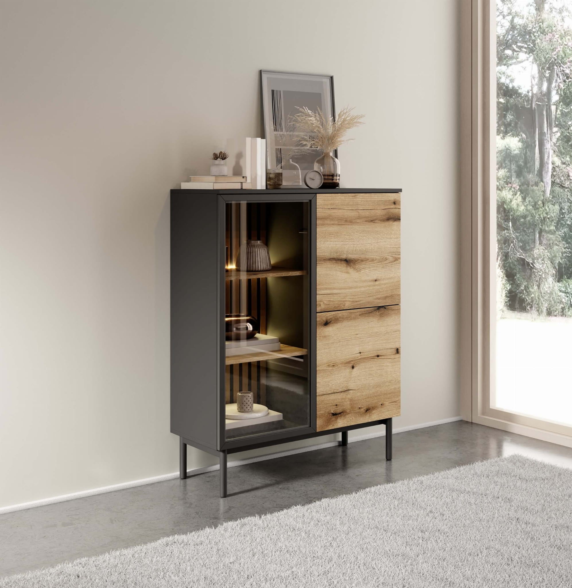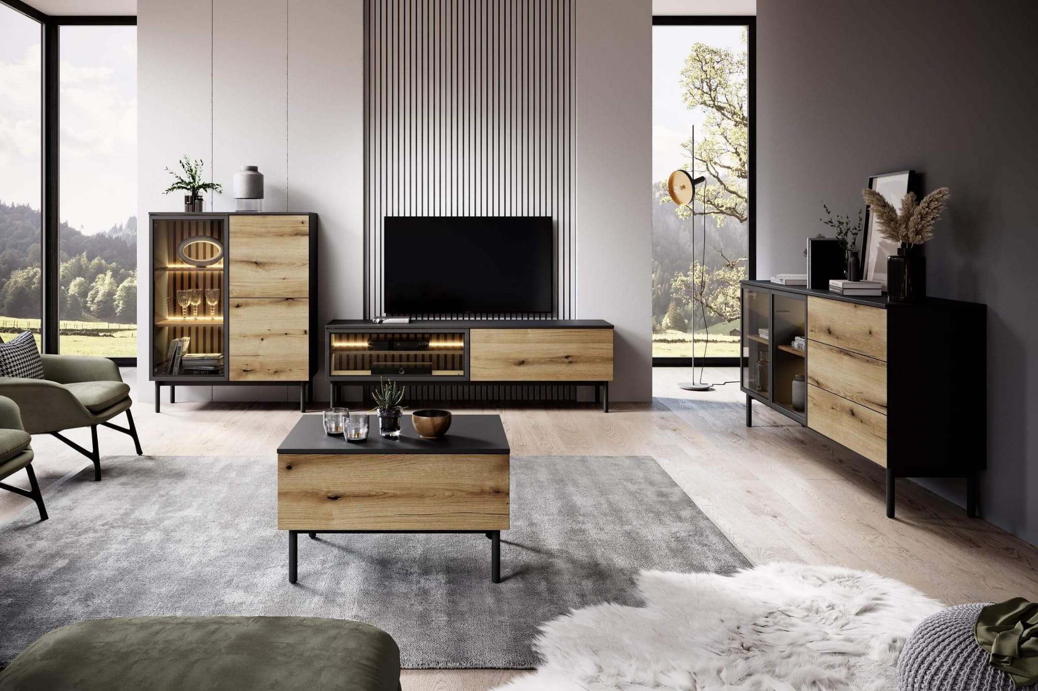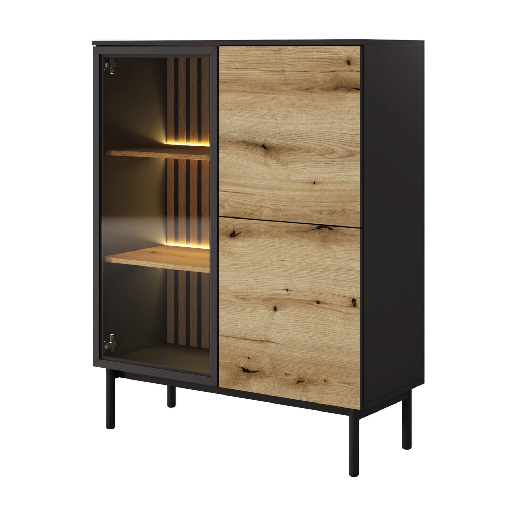 Witryna niska z oświetleniem LANG (B) | Dąb evoke, czarny