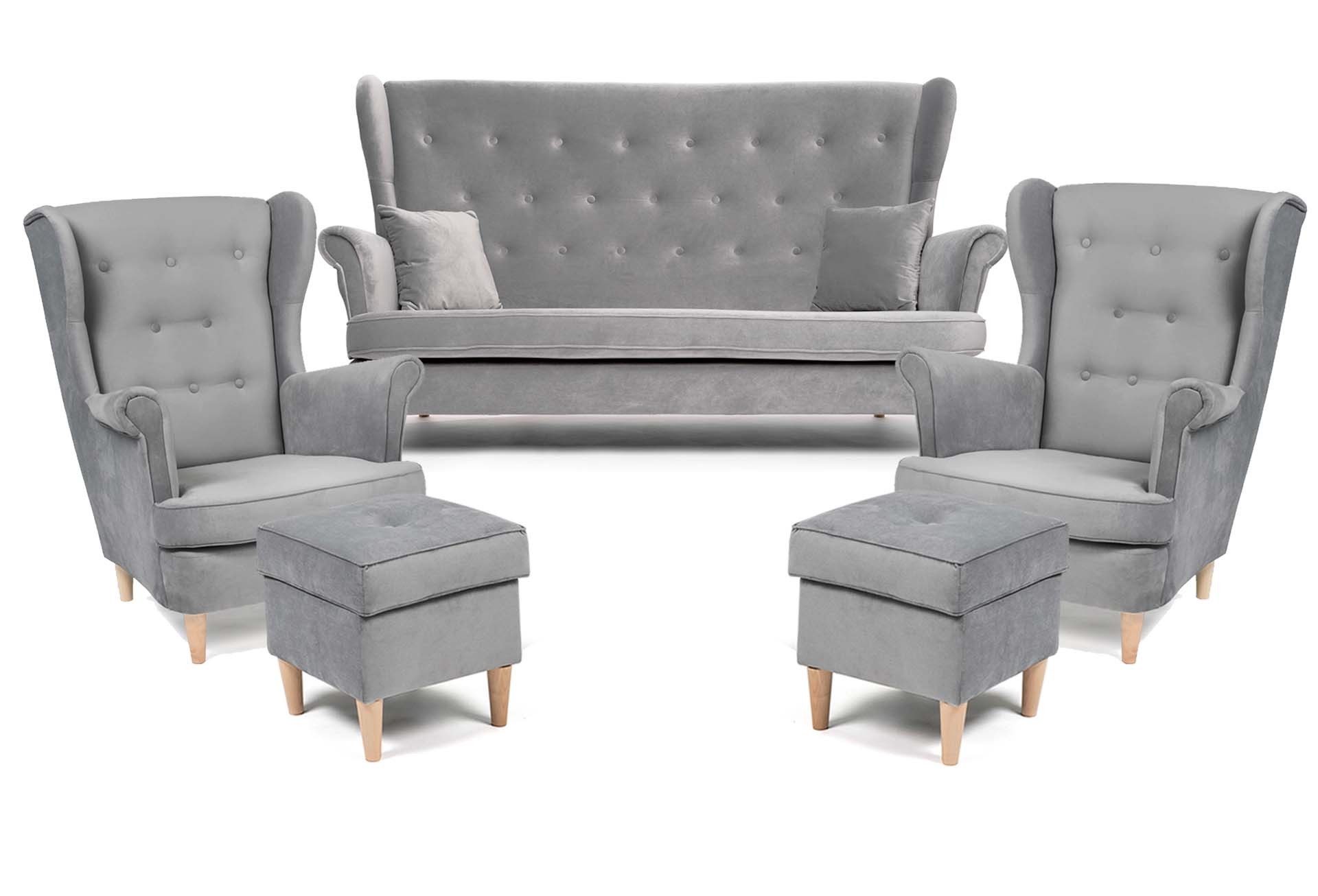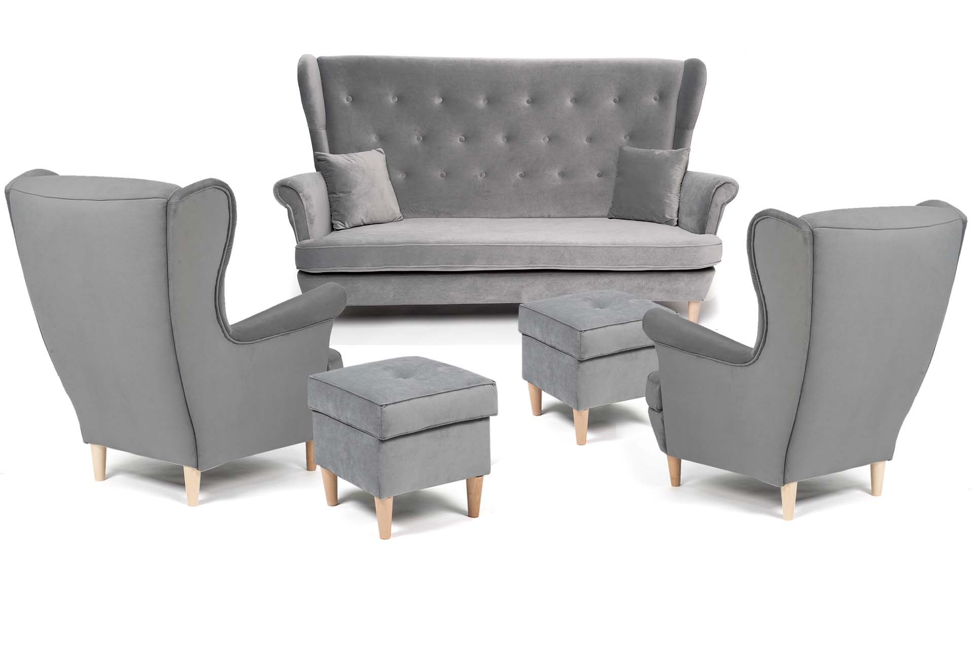 | Wykonanie | - 2 x Fotel z podnóżkiem i poduszką - Sofa 3 osobowa |