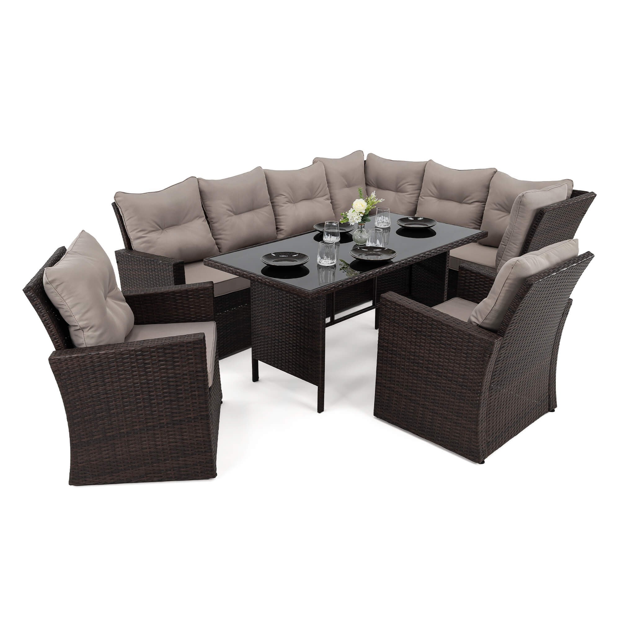 Zestaw mebli ogrodowych MALAGA | Technorattan | Brąz | Poduszki Szary 03