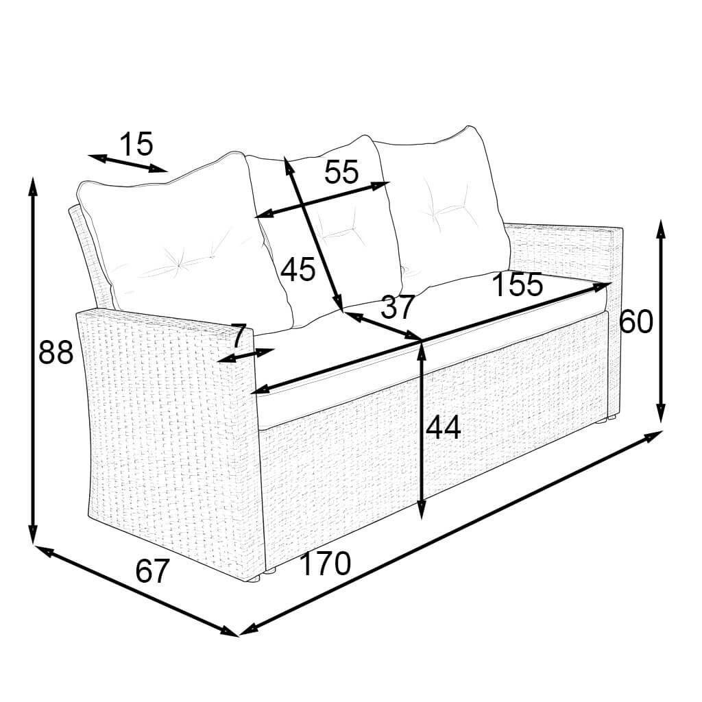 • Zestaw składa się z 2 sof trzyosobowych, 2 foteli i dużego stołu.