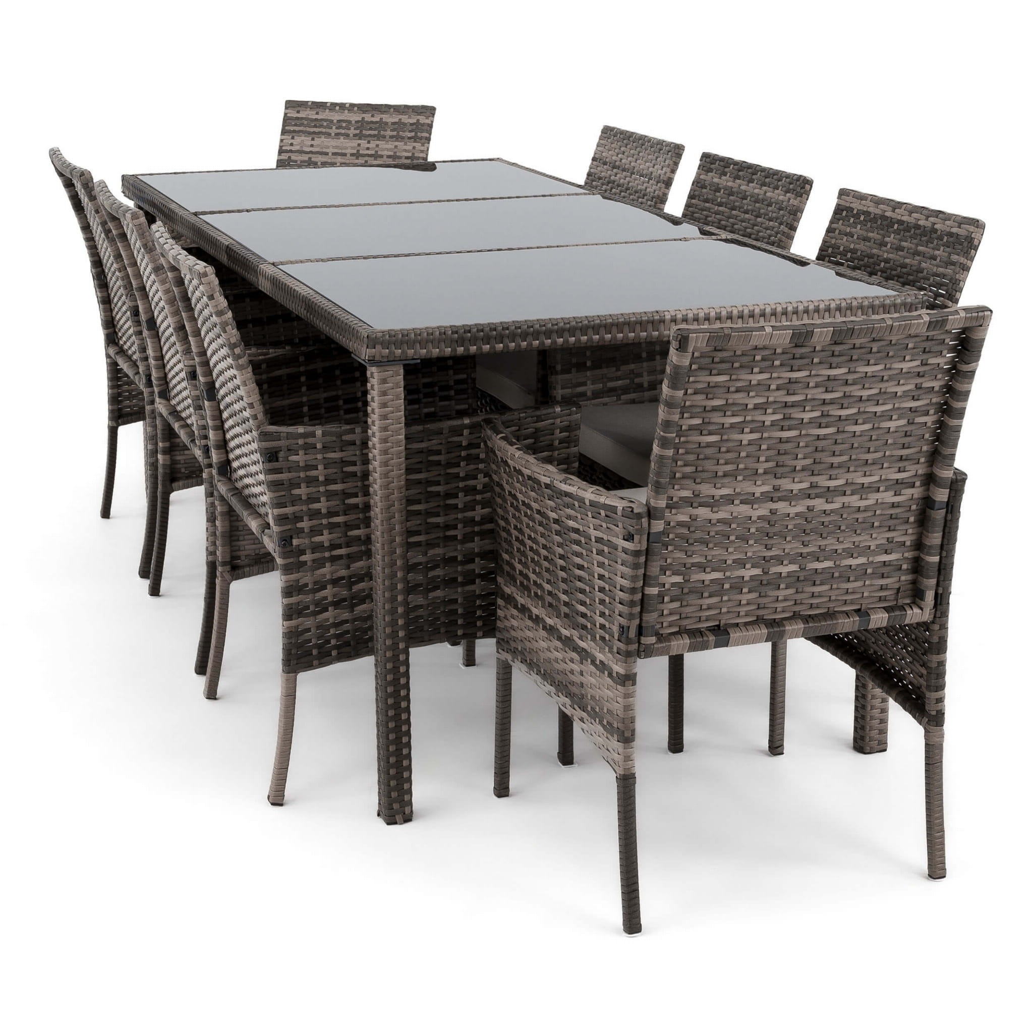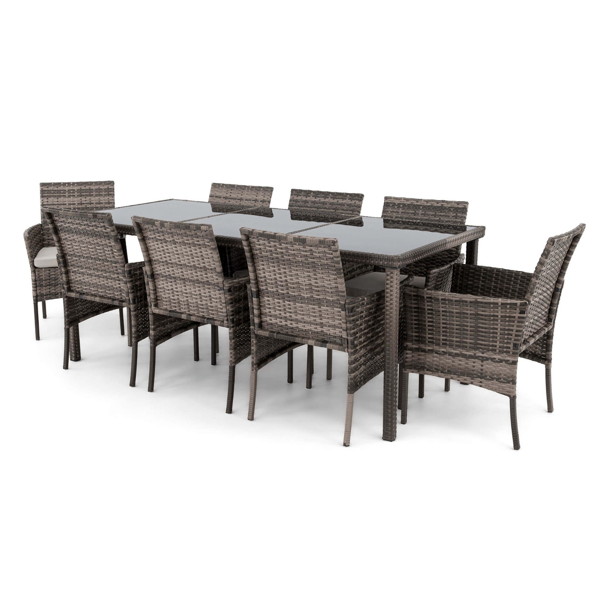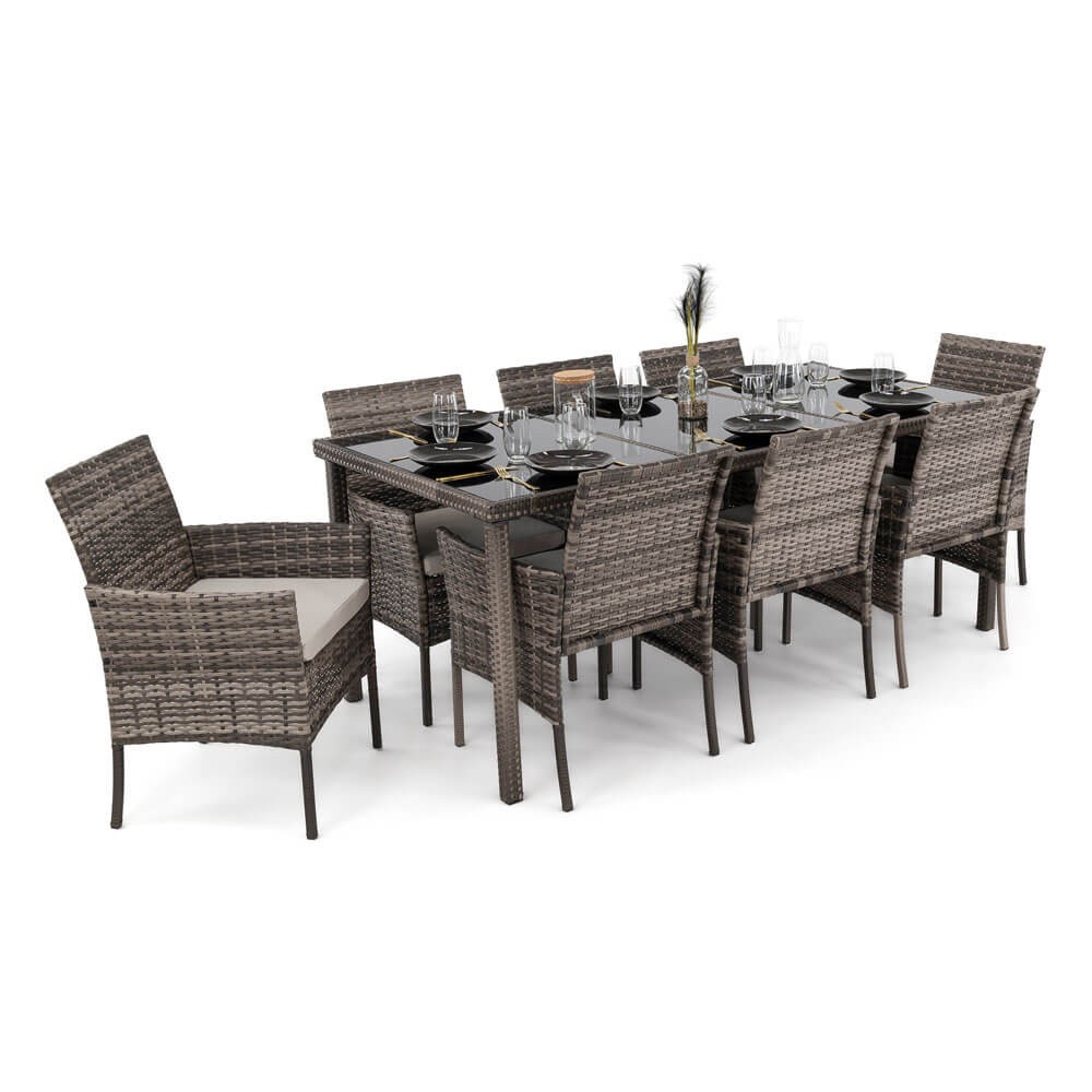 Zestaw ogrodowy z technorattanu szary: stół + 8 krzeseł