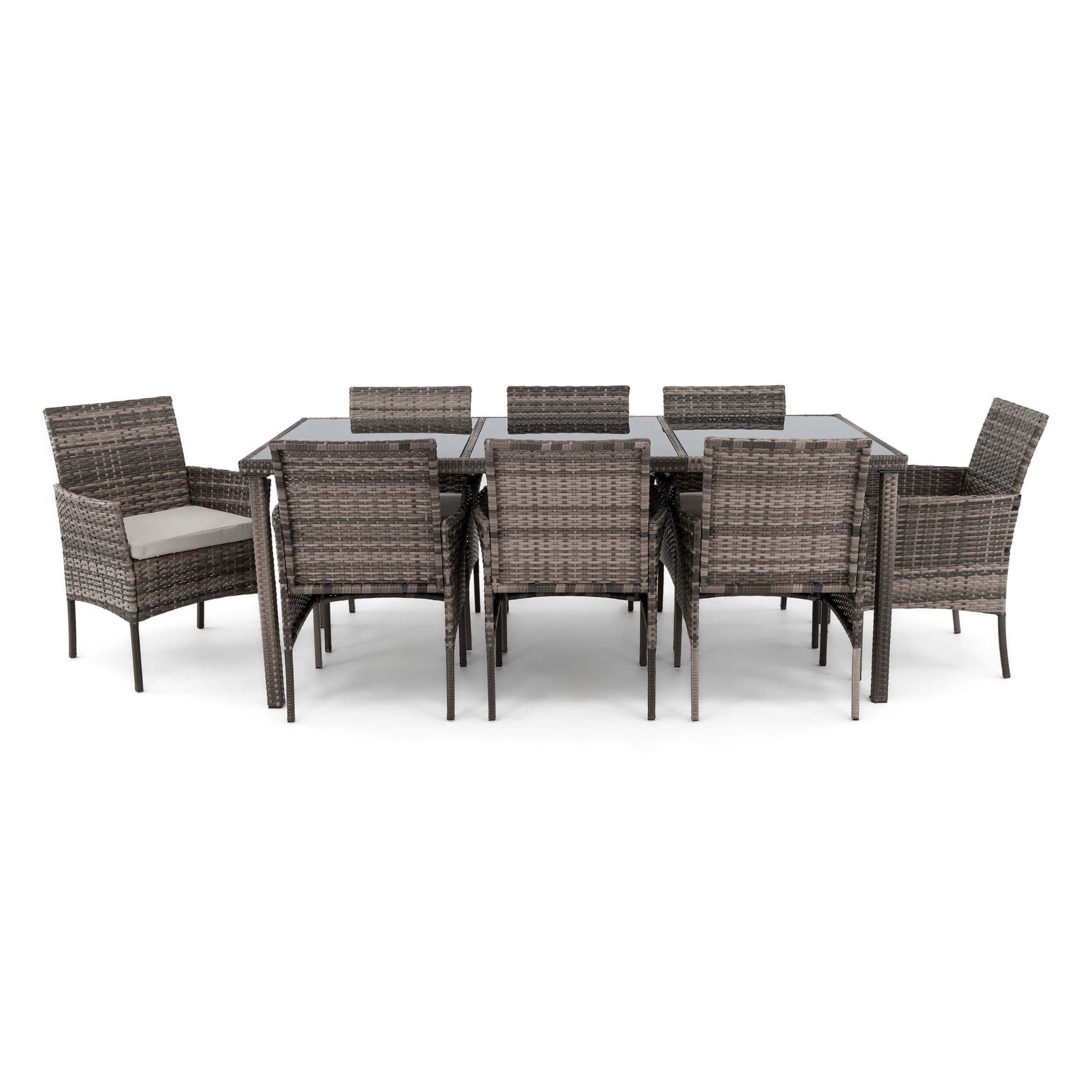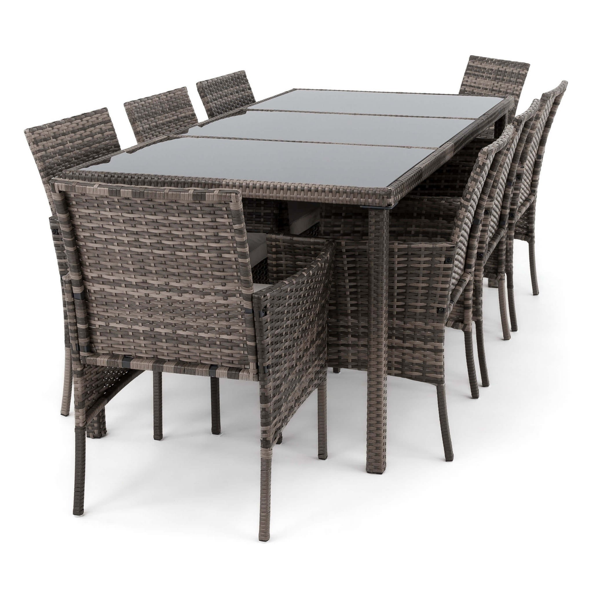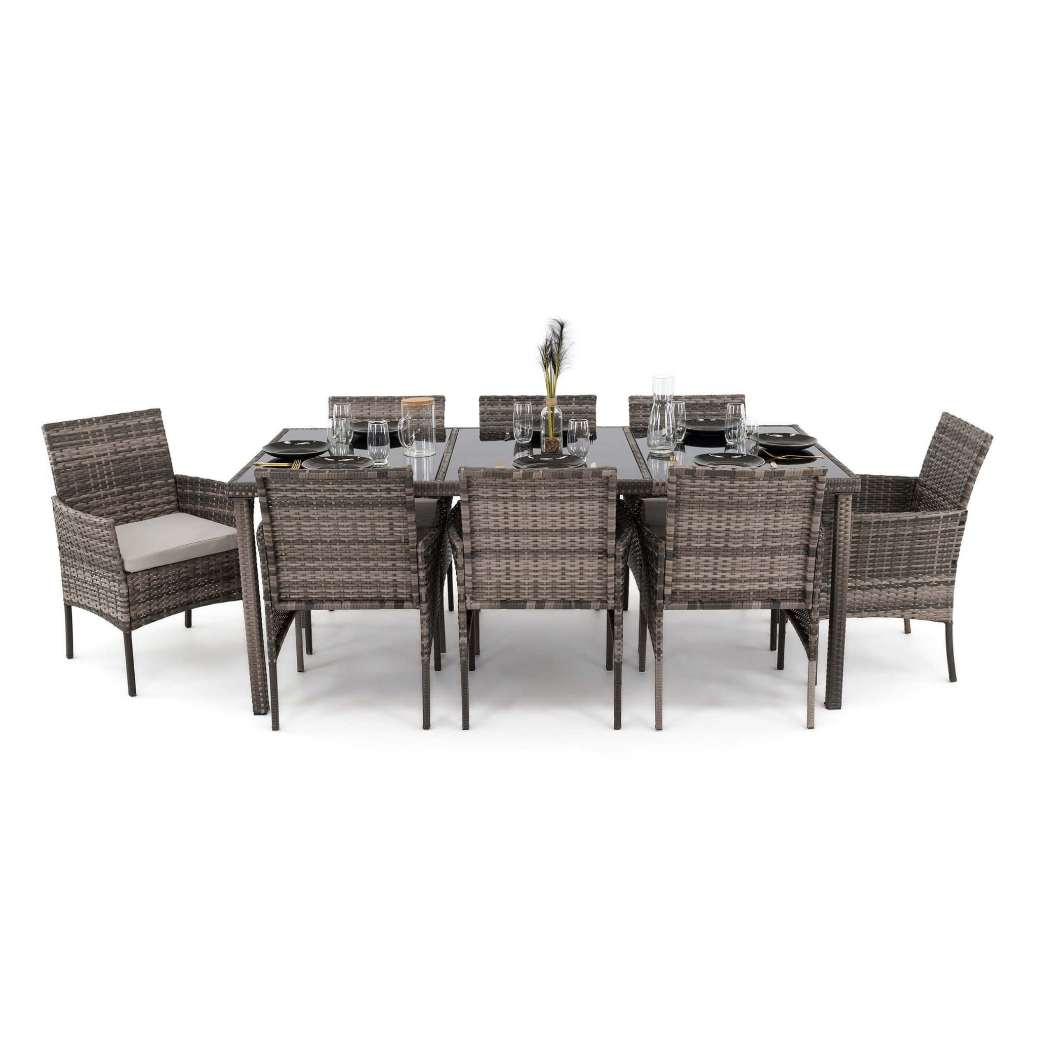 Zestaw ogrodowy z technorattanu szary: stół + 8 krzeseł