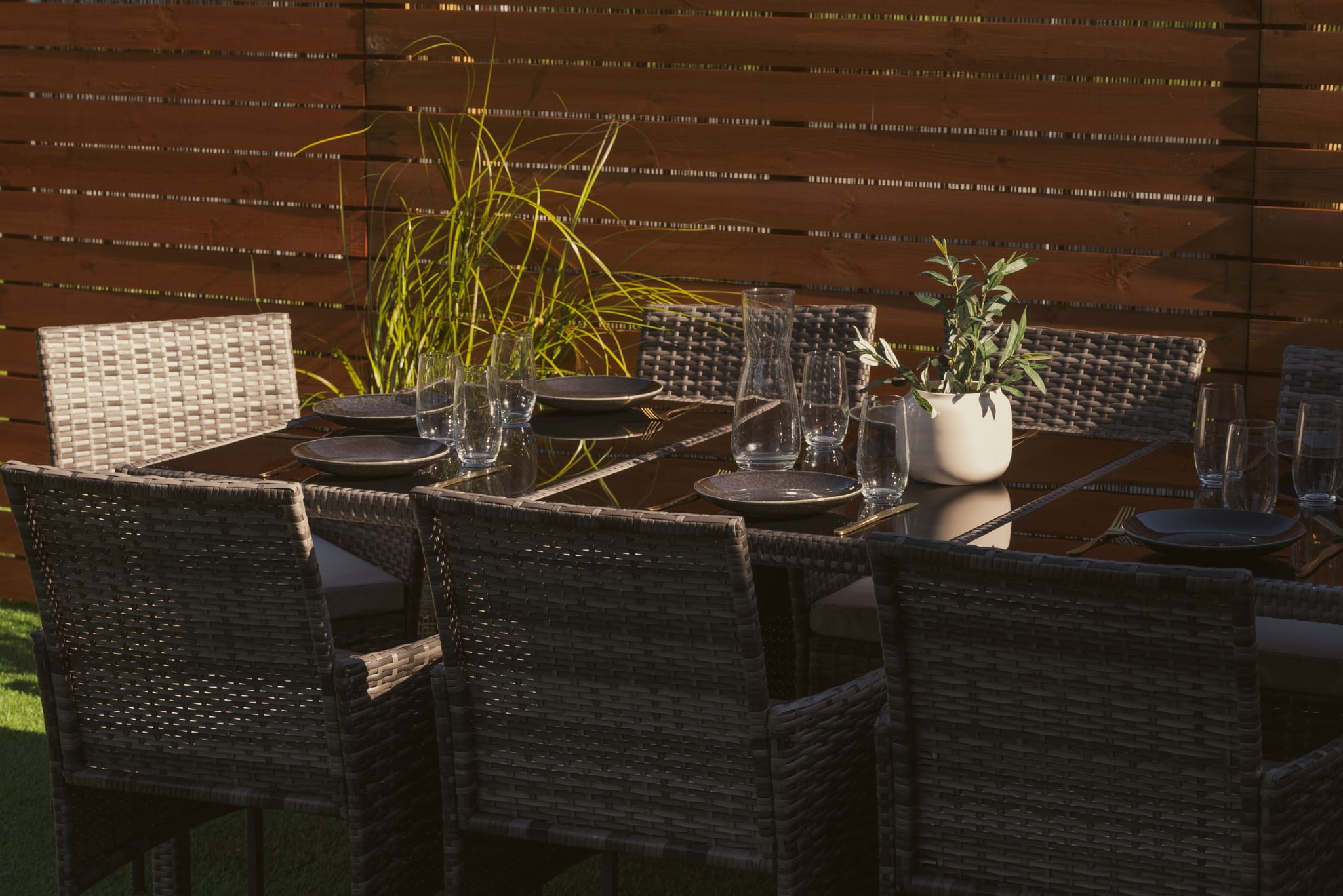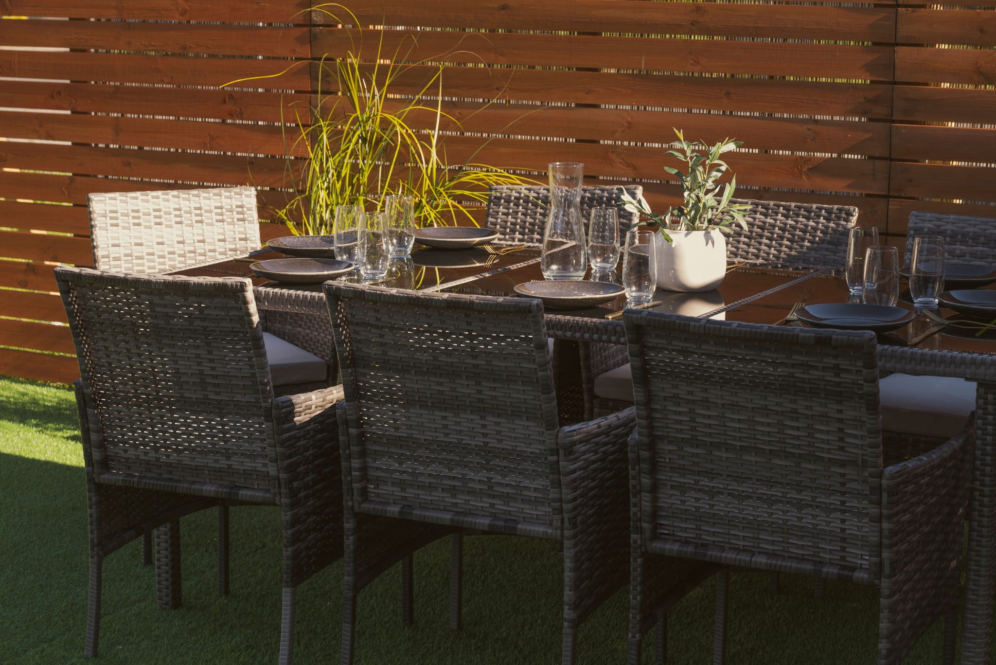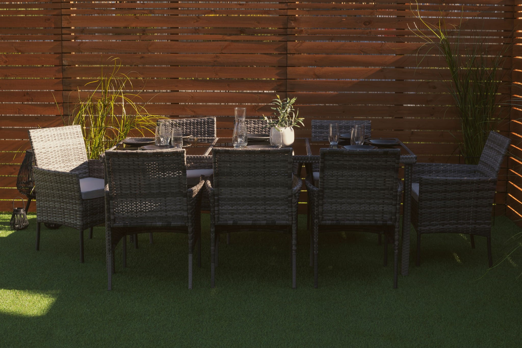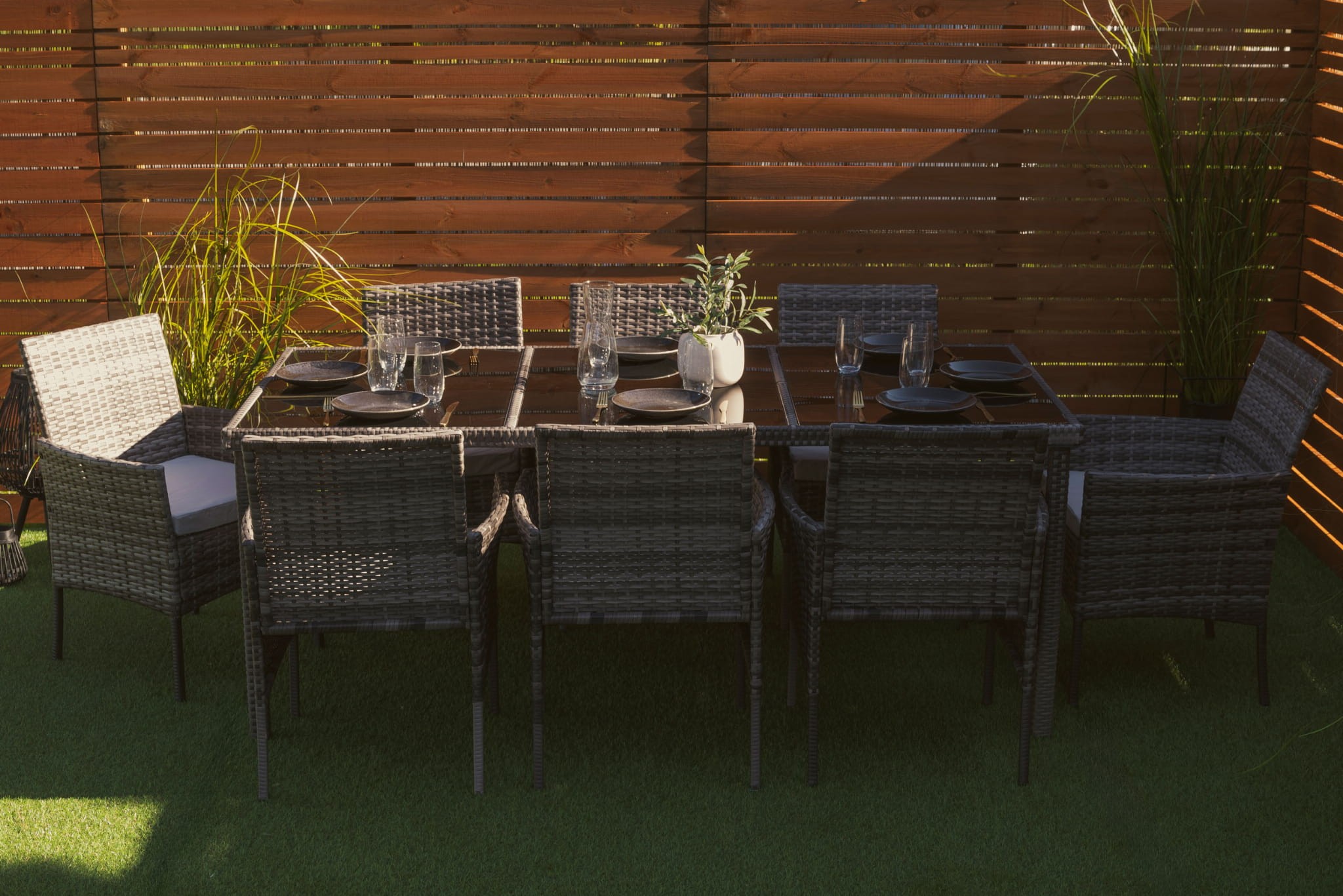 Niezwykle wygodny zestaw ogrodowy obiadowy dla 8 osób - MILOT to połączenie najwyższej jakości materiałów i precyzyjnego, bardzo starannego wykonania. To meble, które dzięki praktycznemu wykonaniu sprawdzą się jako wyposażenie ogrodu, tarasu, balkonu lub werandy. Komplet składa się z 8 wyprofilowanych i wygodnych krzeseł oraz stołu obiadowego, który umożliwia organizację rodzinnych przyjęć czy spotkań przy kawie i grillu. Każde siedzisko uzupełnione jest o wygodną i przytulną poduchę, która zapewnia wygodę podczas relaksu, a miłe w dotyku poszewki cechuje odporność na intensywne użytkowanie i zmienne warunki pogodowe. Zamki błyskawiczne umożliwiają zdejmowanie ich do prania. Przepiękne, szare wybarwienie bez trudu wkomponuje się w każdą aranżację, a zwłaszcza taką pełną drewna i naturalnych zielonych roślin. Konstrukcja mebli wykonana jest z metalu i ręcznie opleciona technorattanem – jego estetyczna plecionka dodaje elegancji i charakteru, zabezpiecza stal przed rdzewieniem, a do tego jest wytrzymała i odporna na intensywne użytkowanie. Tak wykonana podstawa mebli dodaje stabilności, gwarantuje wytrzymałą budowę wraz z odpornością na potencjalne uszkodzenia. Zestaw ogrodowy MILOT prezentuje się lekko, minimalistycznie, a ażurowa plecionka jest odporna na zbieranie kurzu i wilgoci.