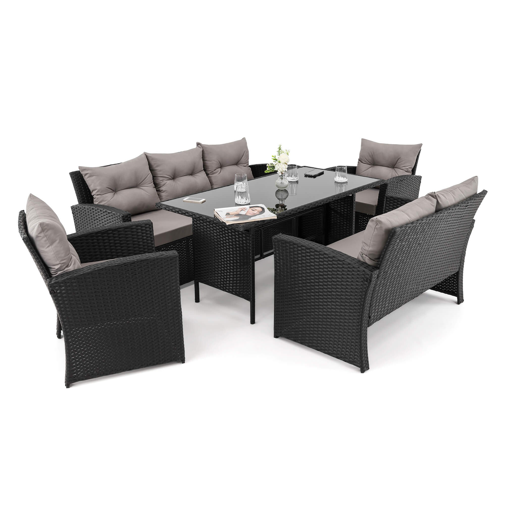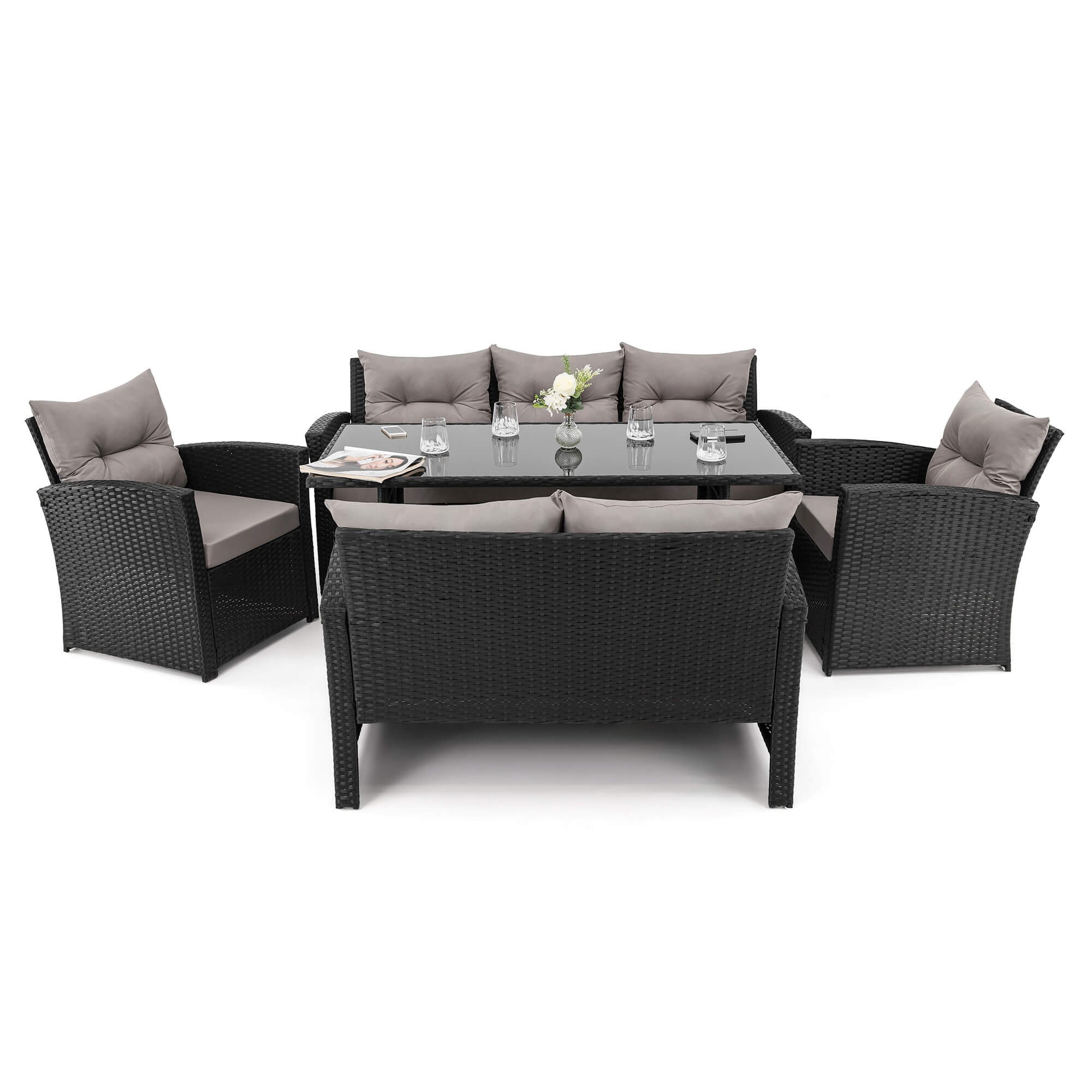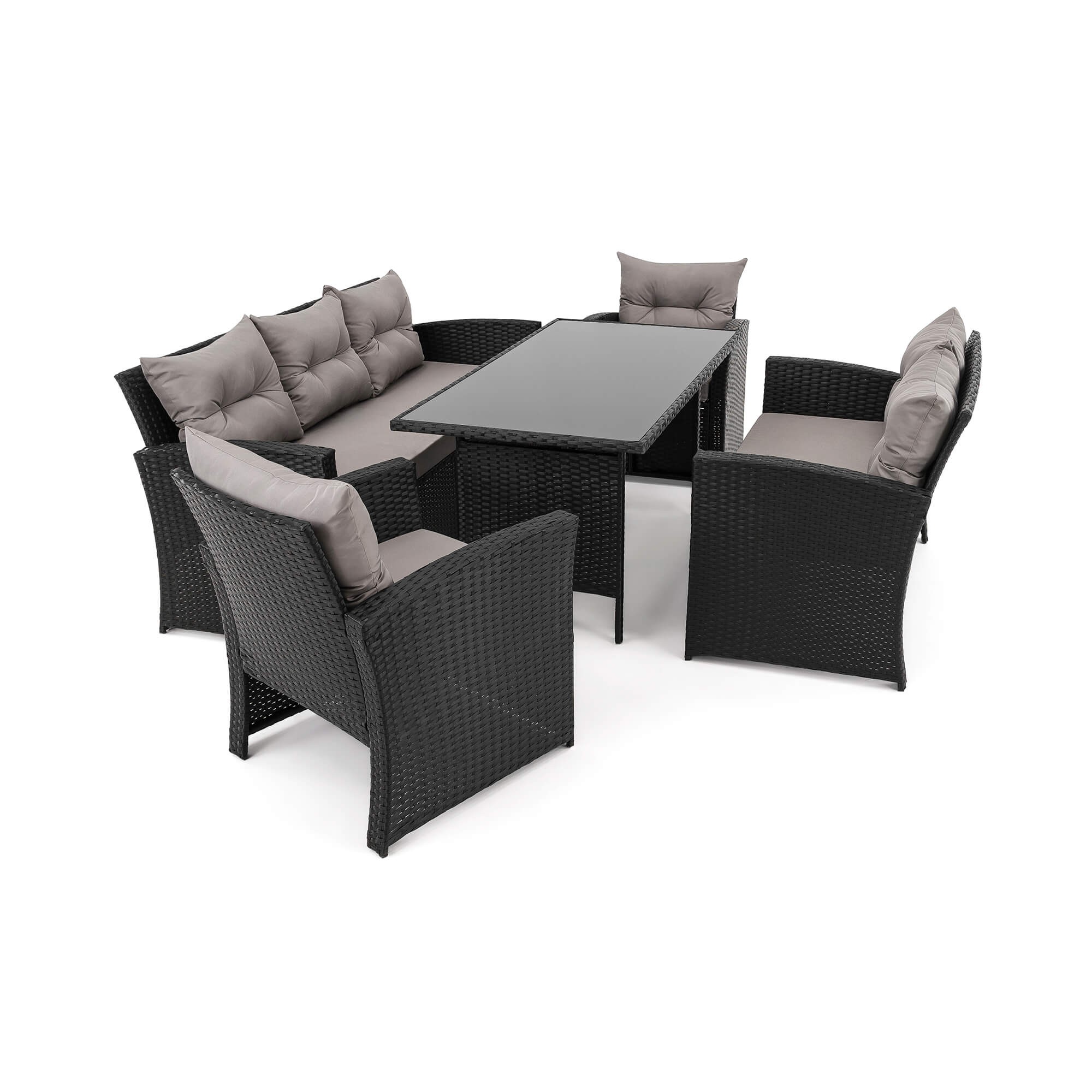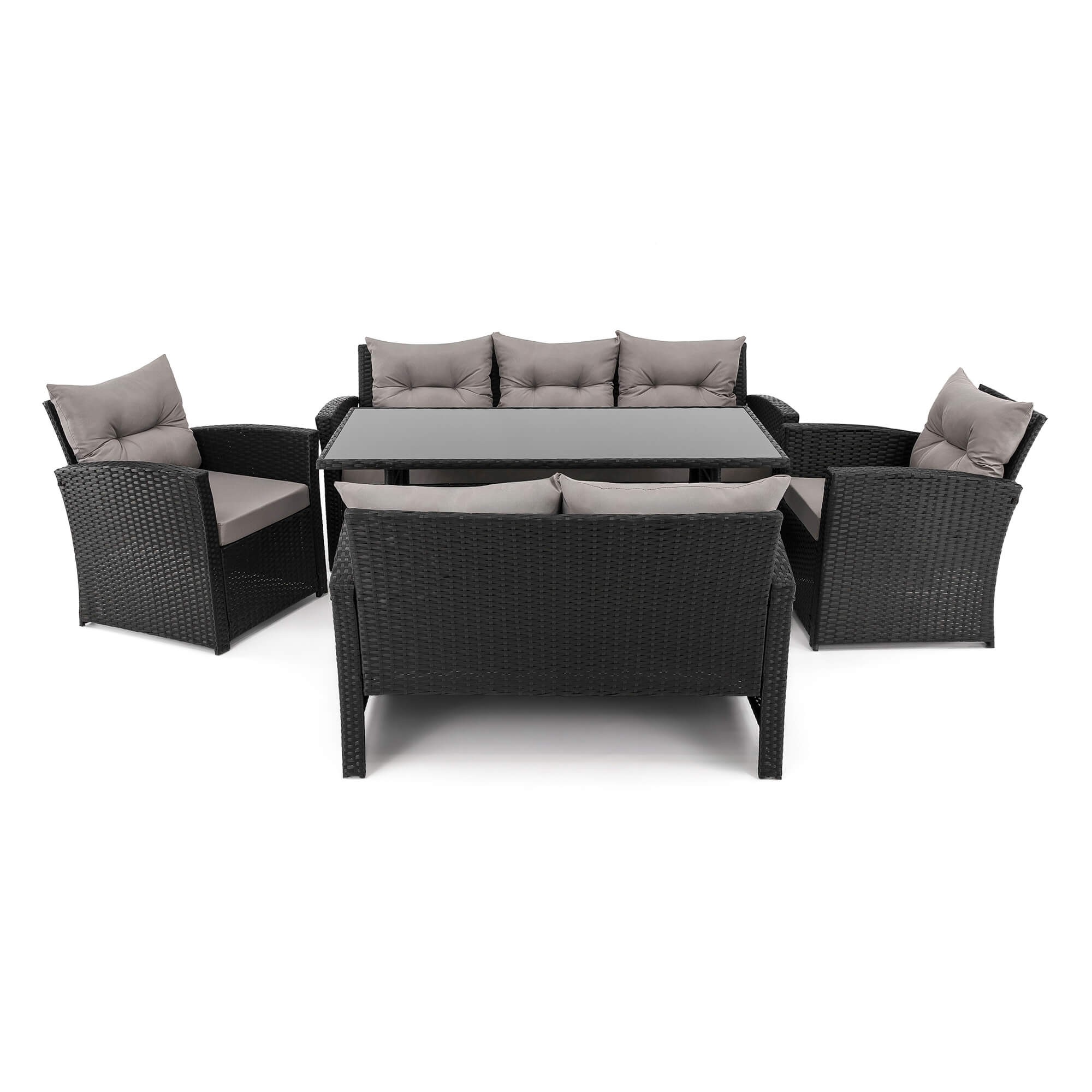Zestaw mebli ogrodowych dla 7 osób MARSYLIA BIG BP | Technorattan | Czarny | Poduszki szare