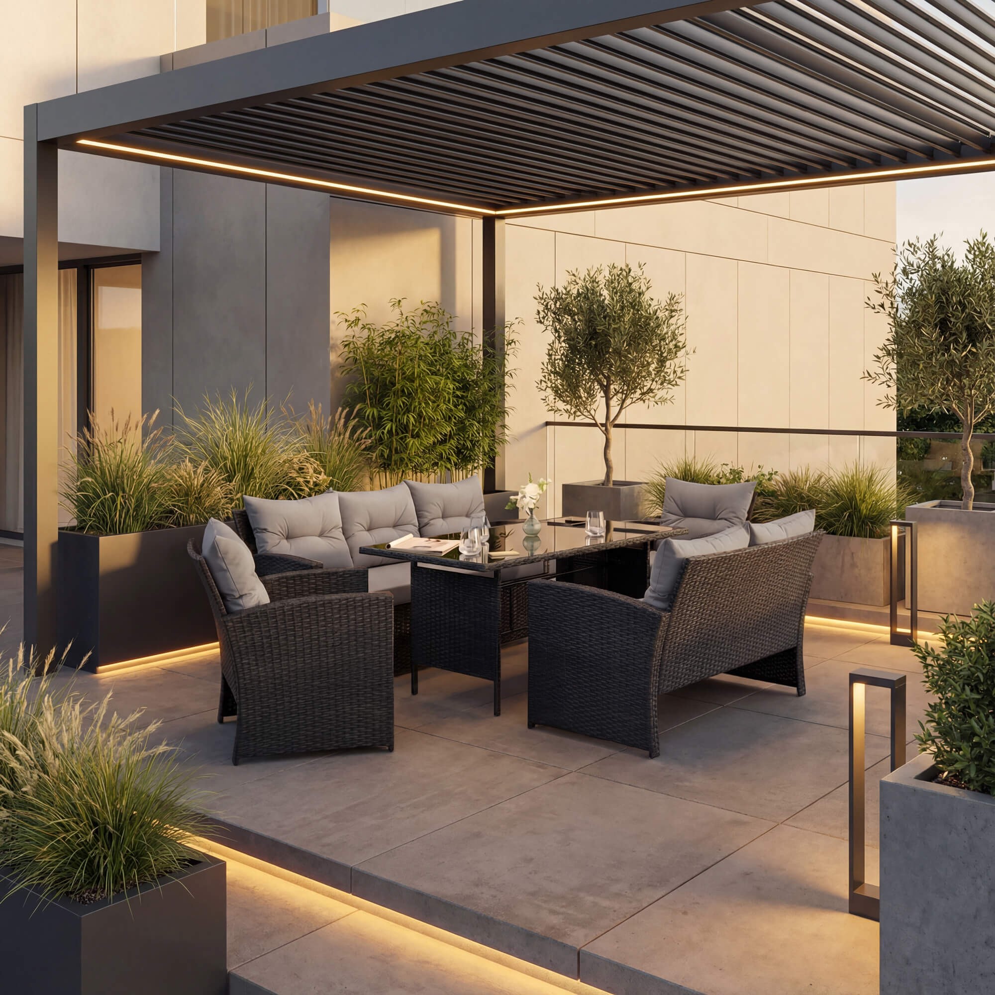 • Praktyczny komplet mebli do ogrodu dla 7 osób