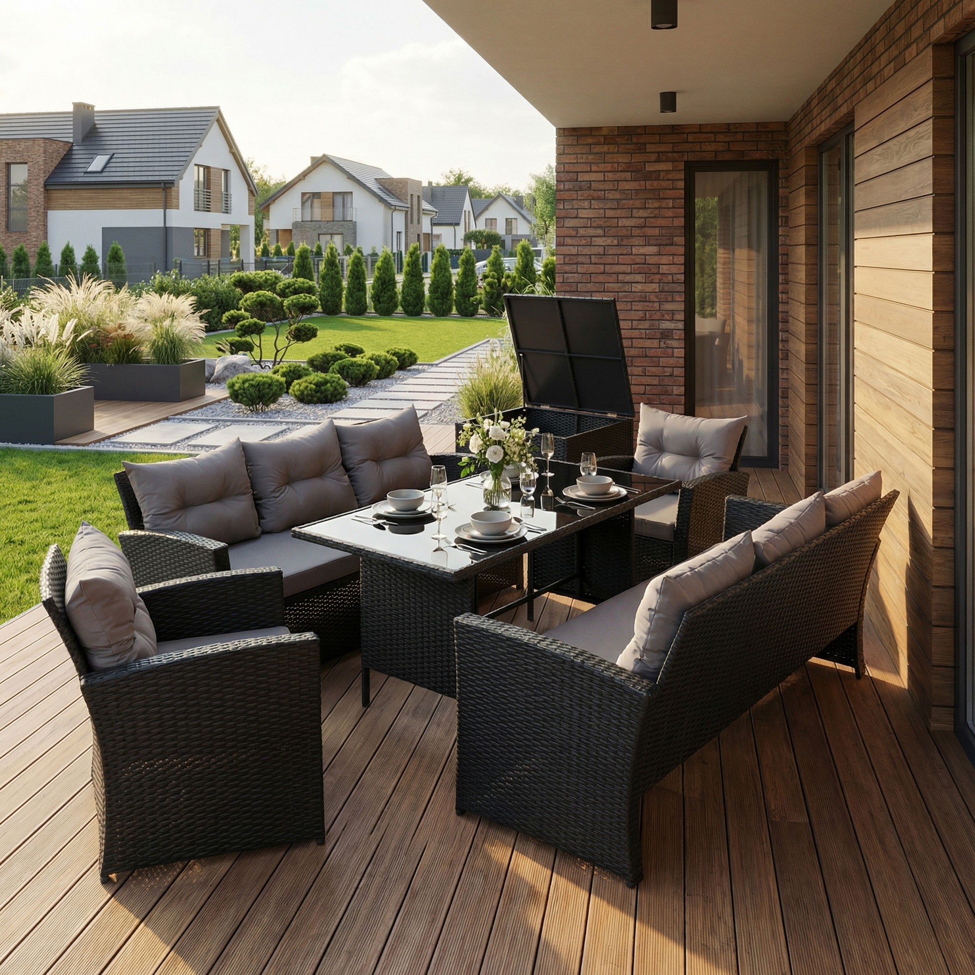 • Praktyczny komplet mebli do ogrodu dla 8 osób