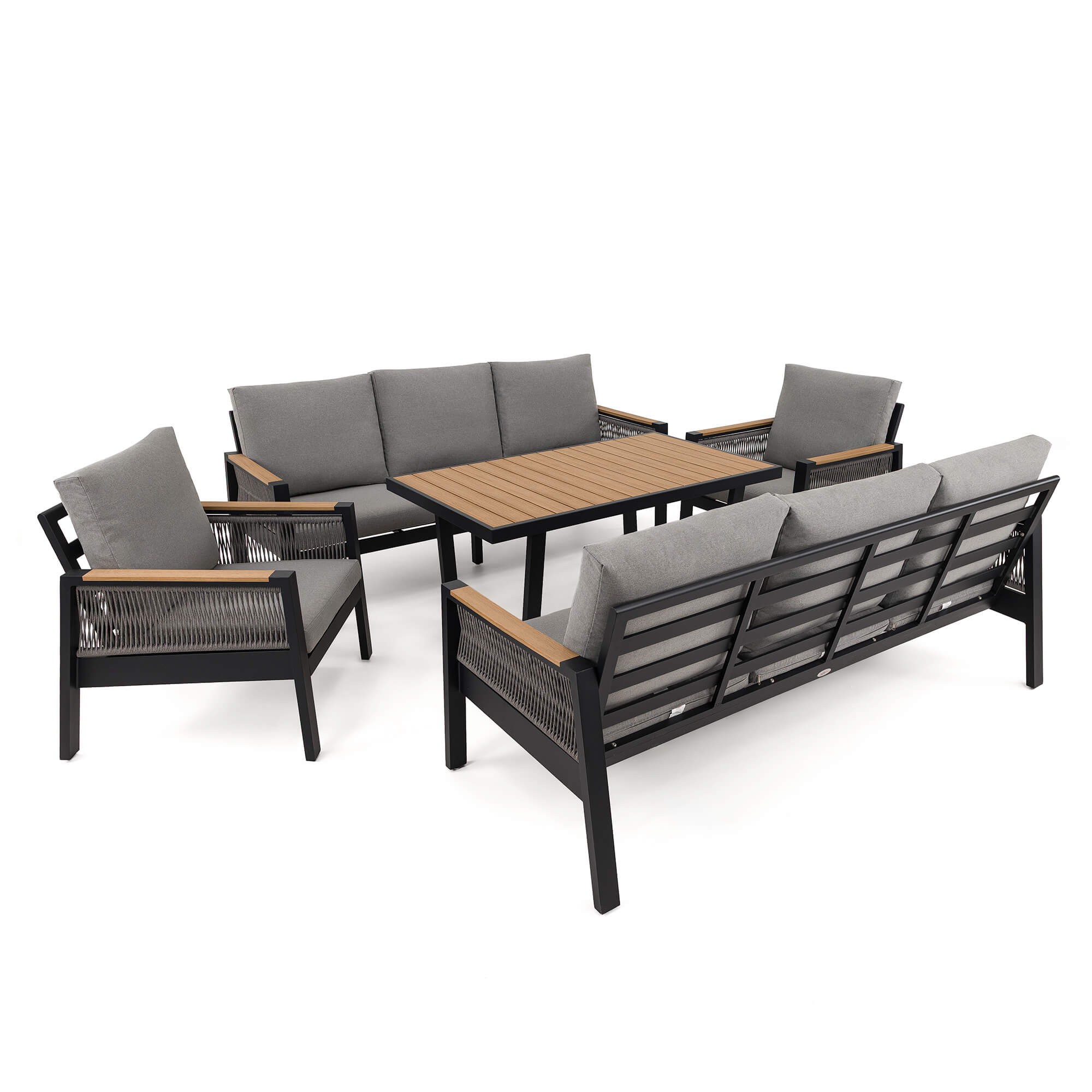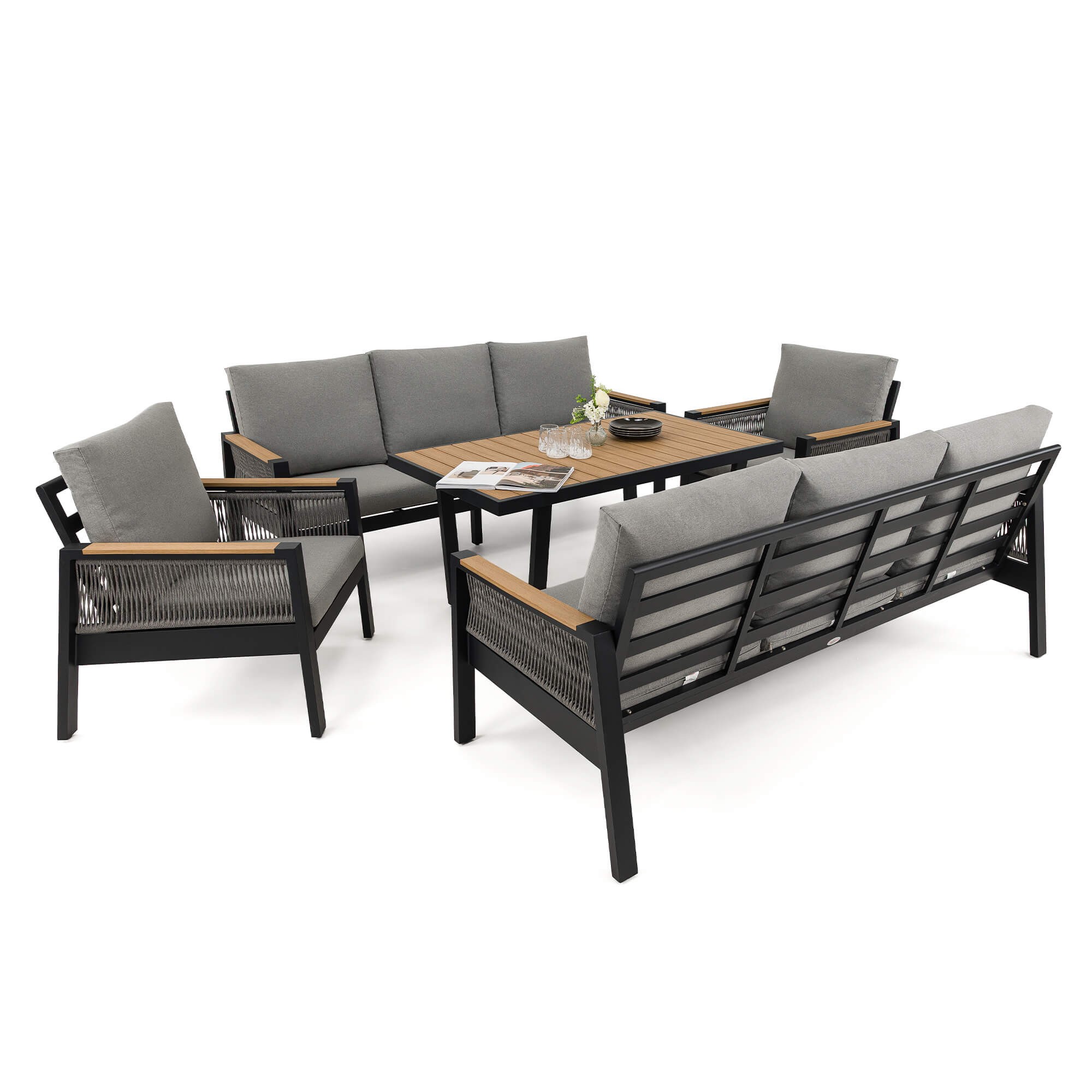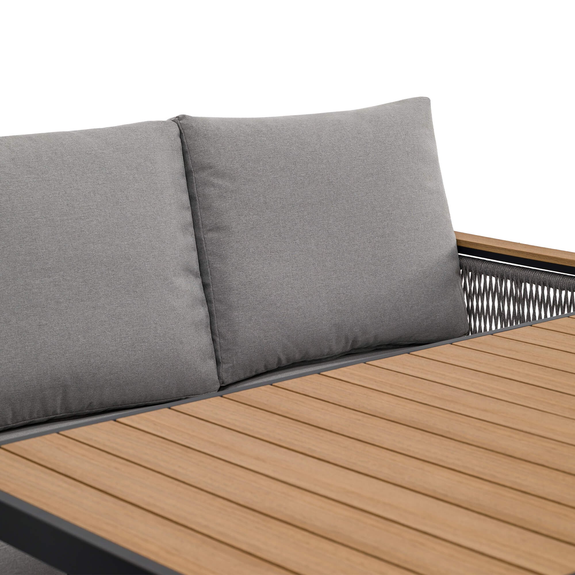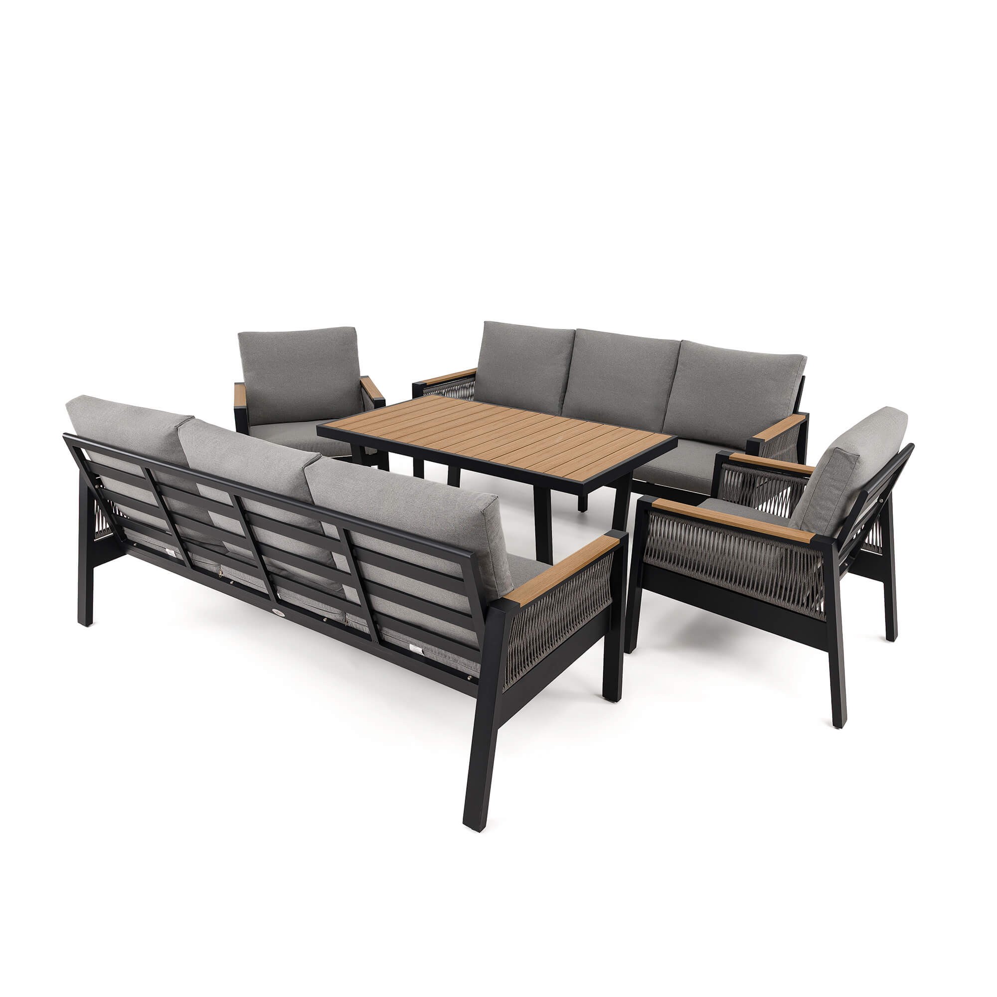 Zestaw mebli ogrodowych z aluminium SYCYLIA DUO | Czarny + imitacja drewna | Szare poduszki