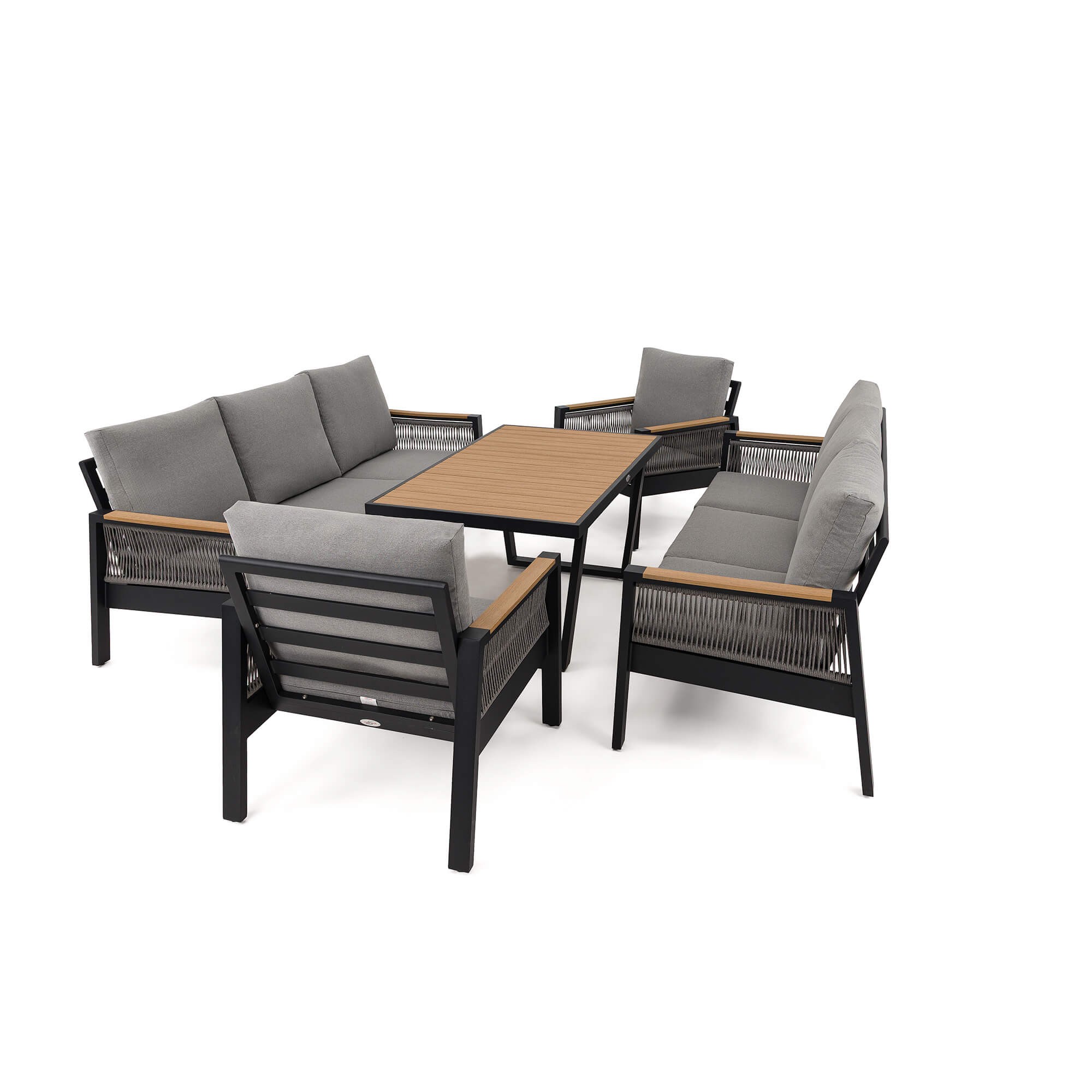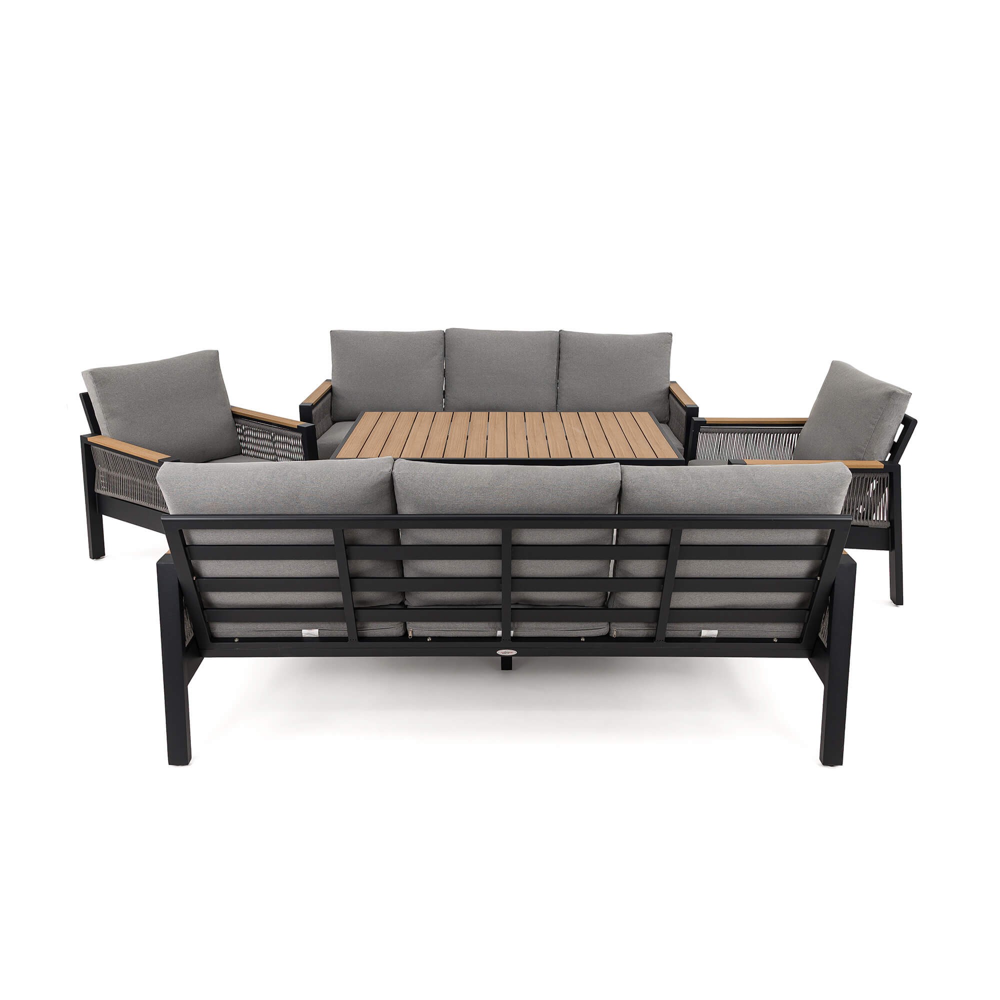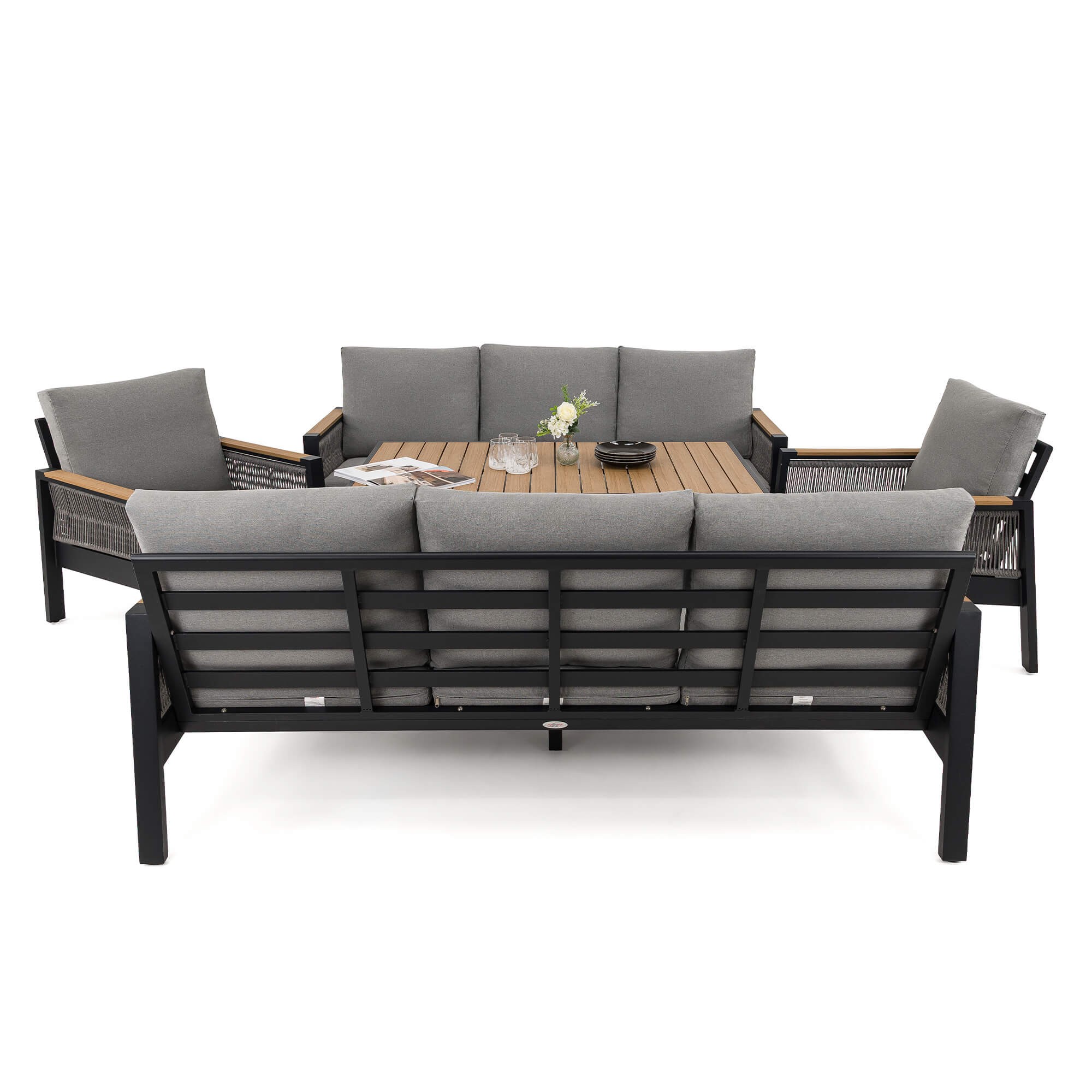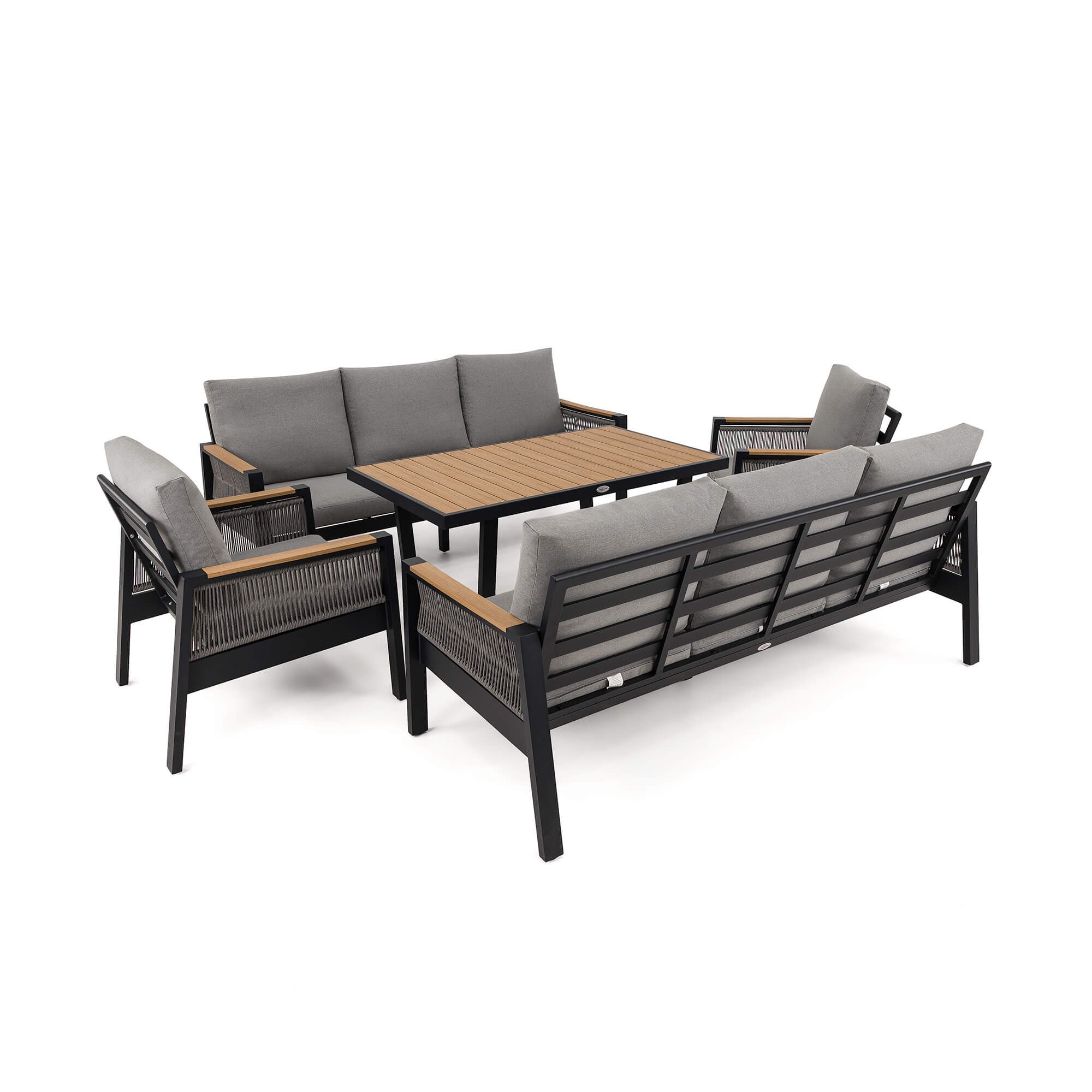 Zestaw mebli ogrodowych z aluminium SYCYLIA DUO | Czarny + imitacja drewna | Szare poduszki