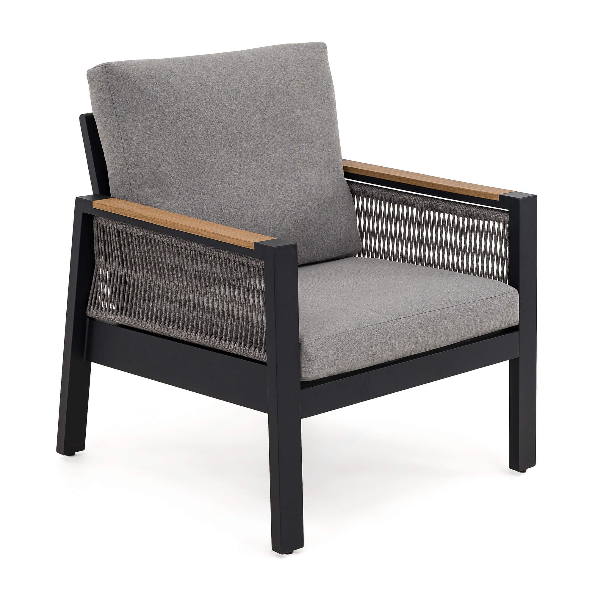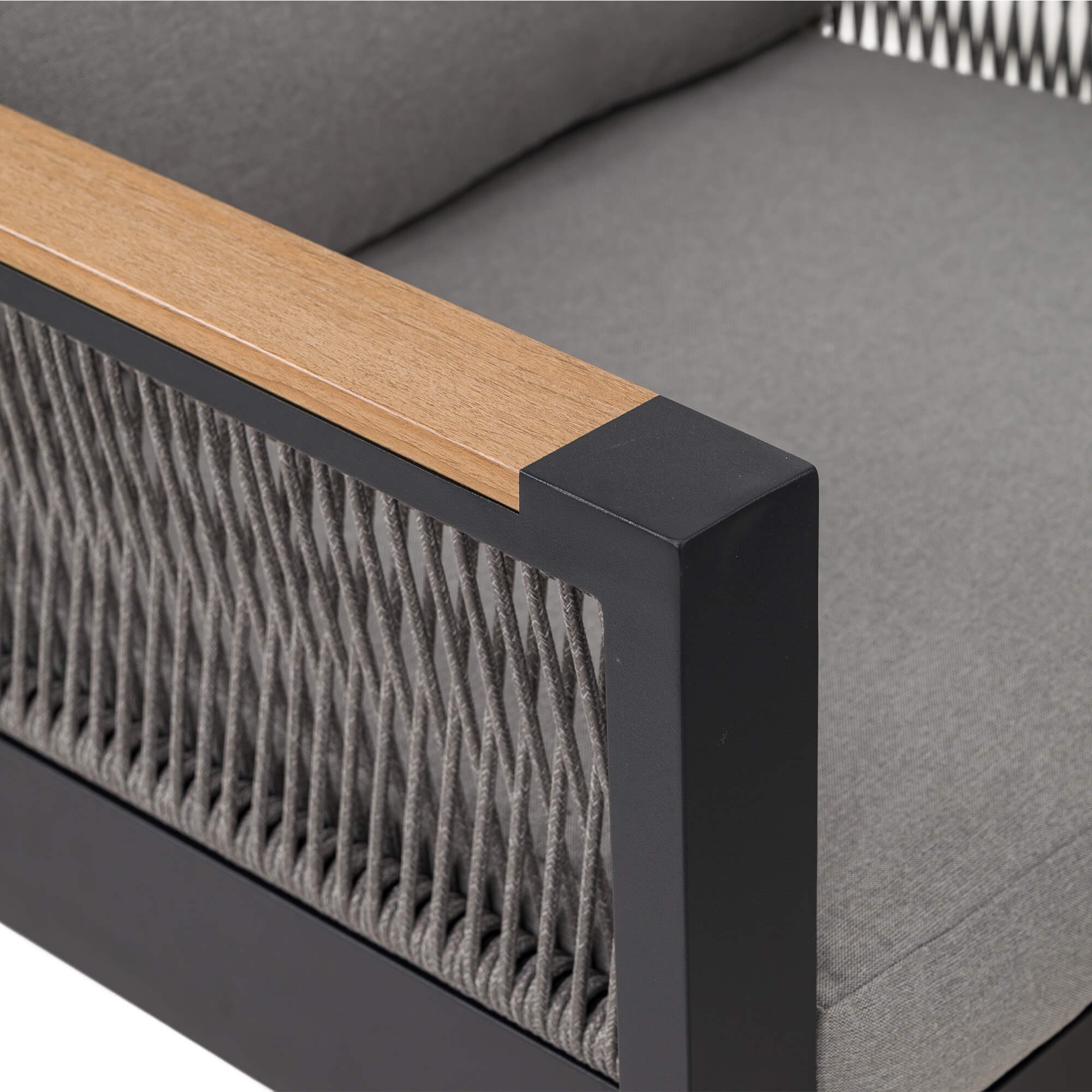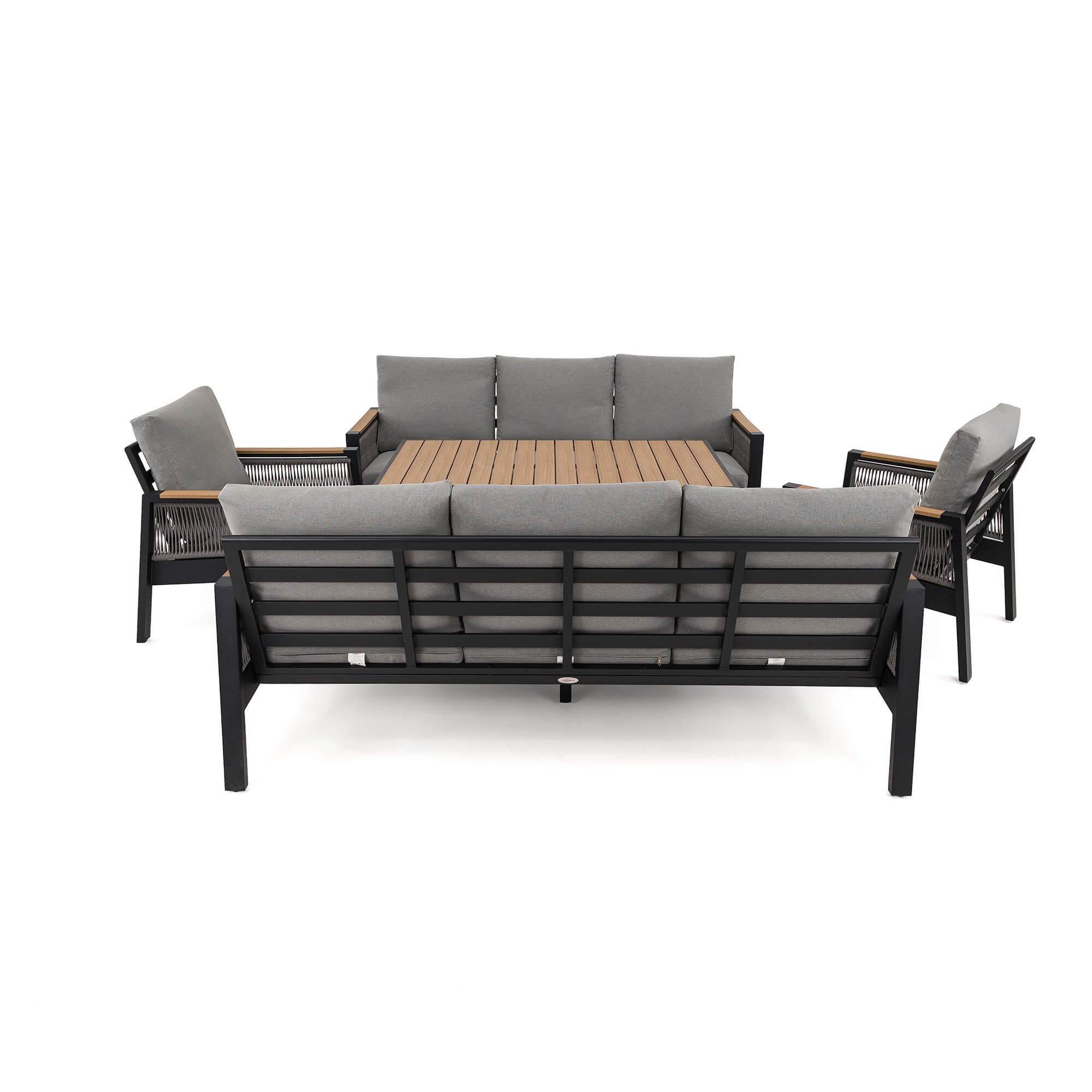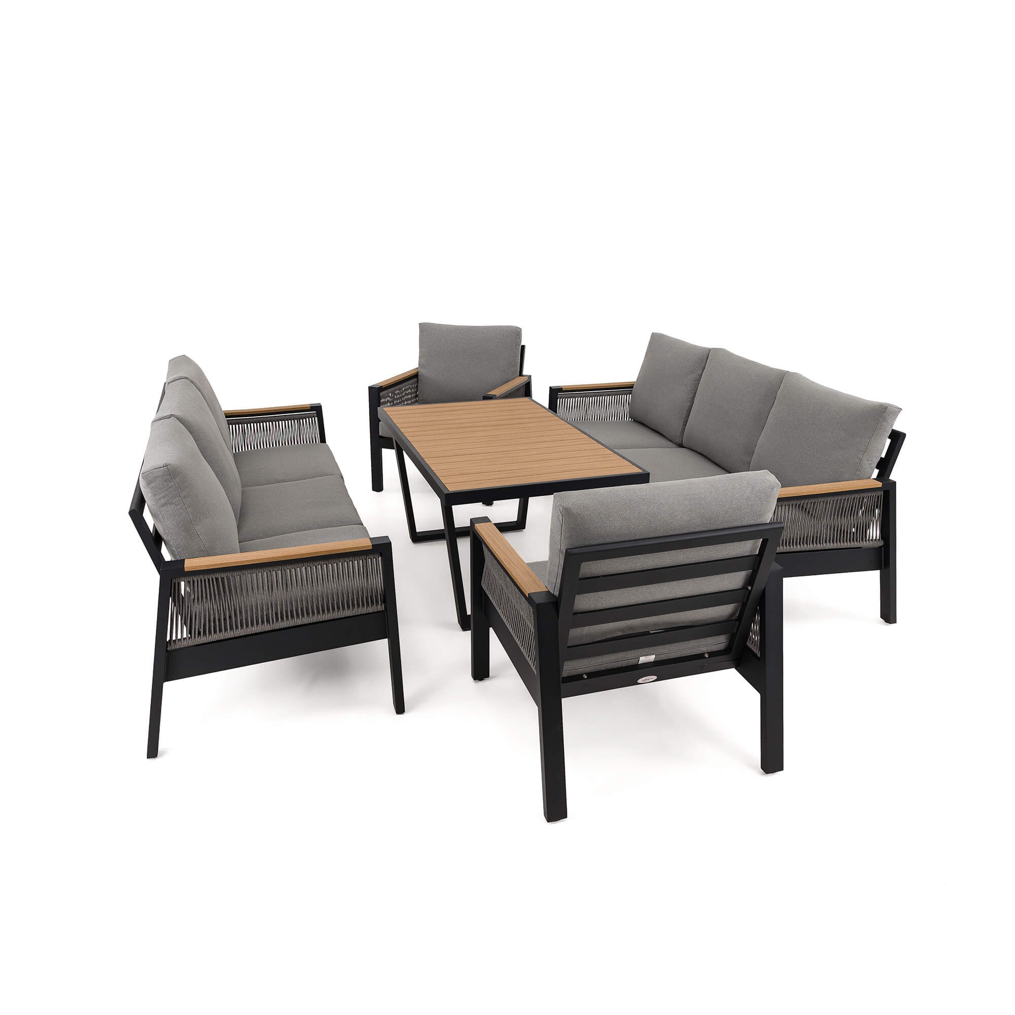 Zestaw mebli ogrodowych z aluminium SYCYLIA DUO | Czarny + imitacja drewna | Szare poduszki