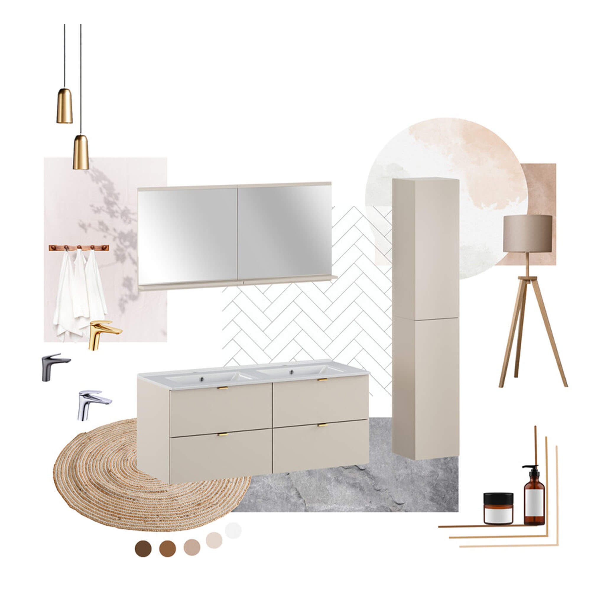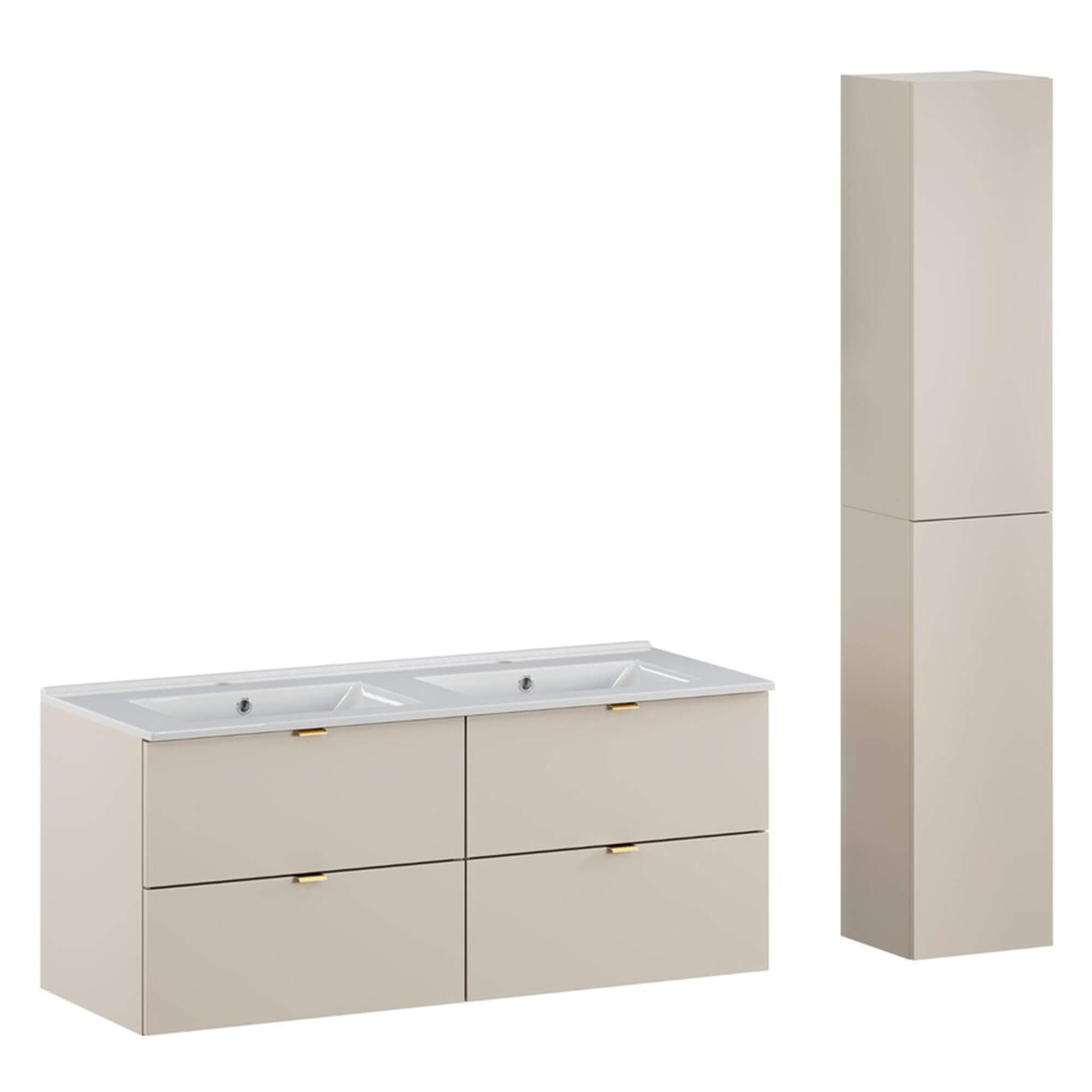 Zestaw meblowy 120cm z umywalką meblową Lava i szafką wysoką | Kolekcja Dalia Cashmere | Kaszmirowy Mat