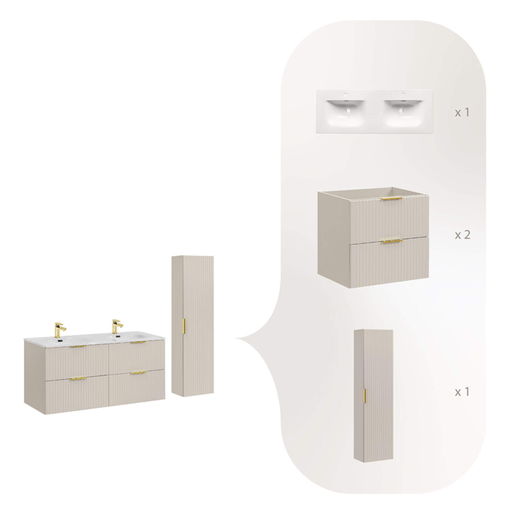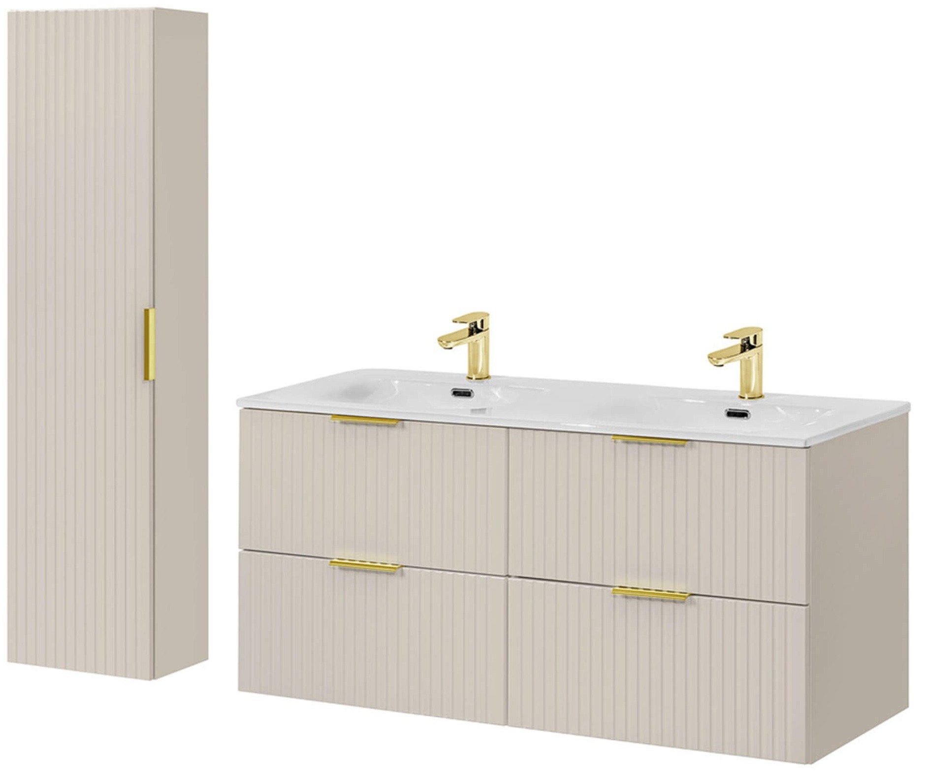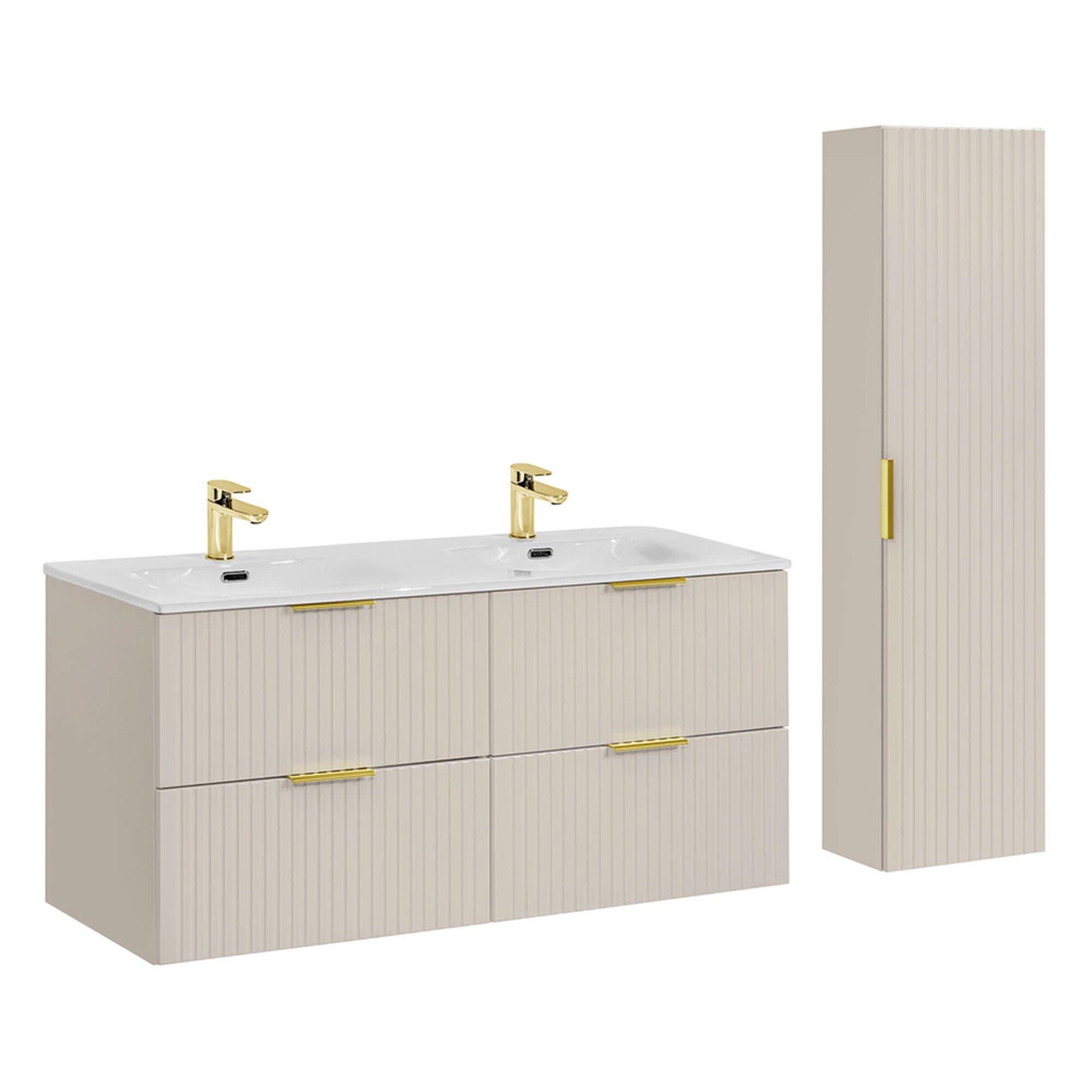 Zestaw meblowy 120cm z umywalką meblową SKY i szafką wysoką| Kolekcja ADEL CASHMERE | Kaszmirowy Mat