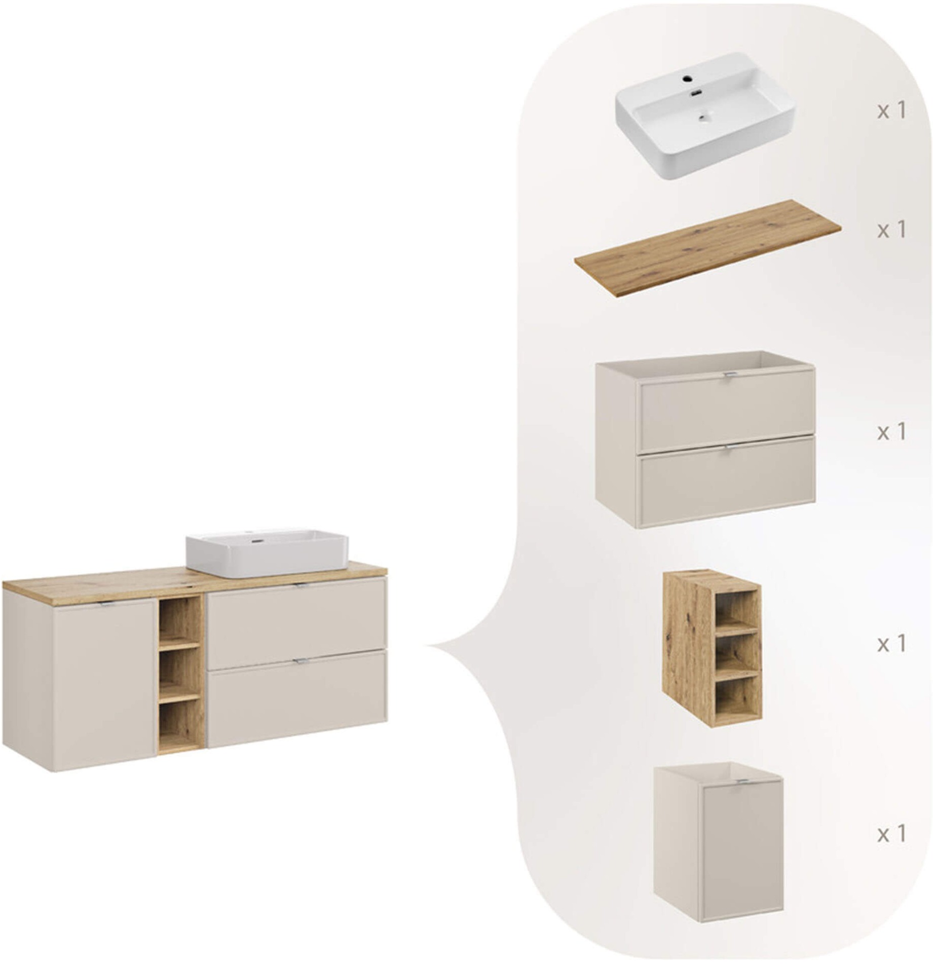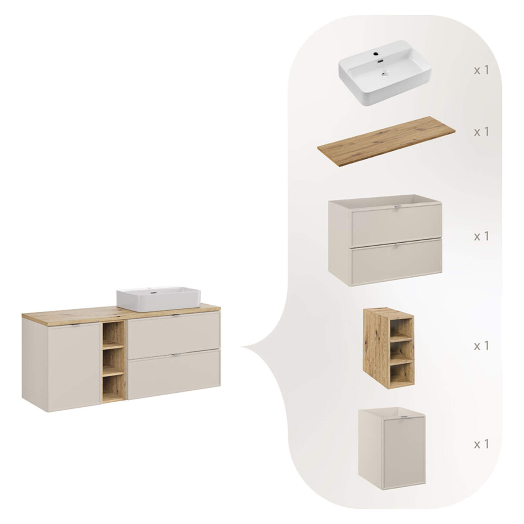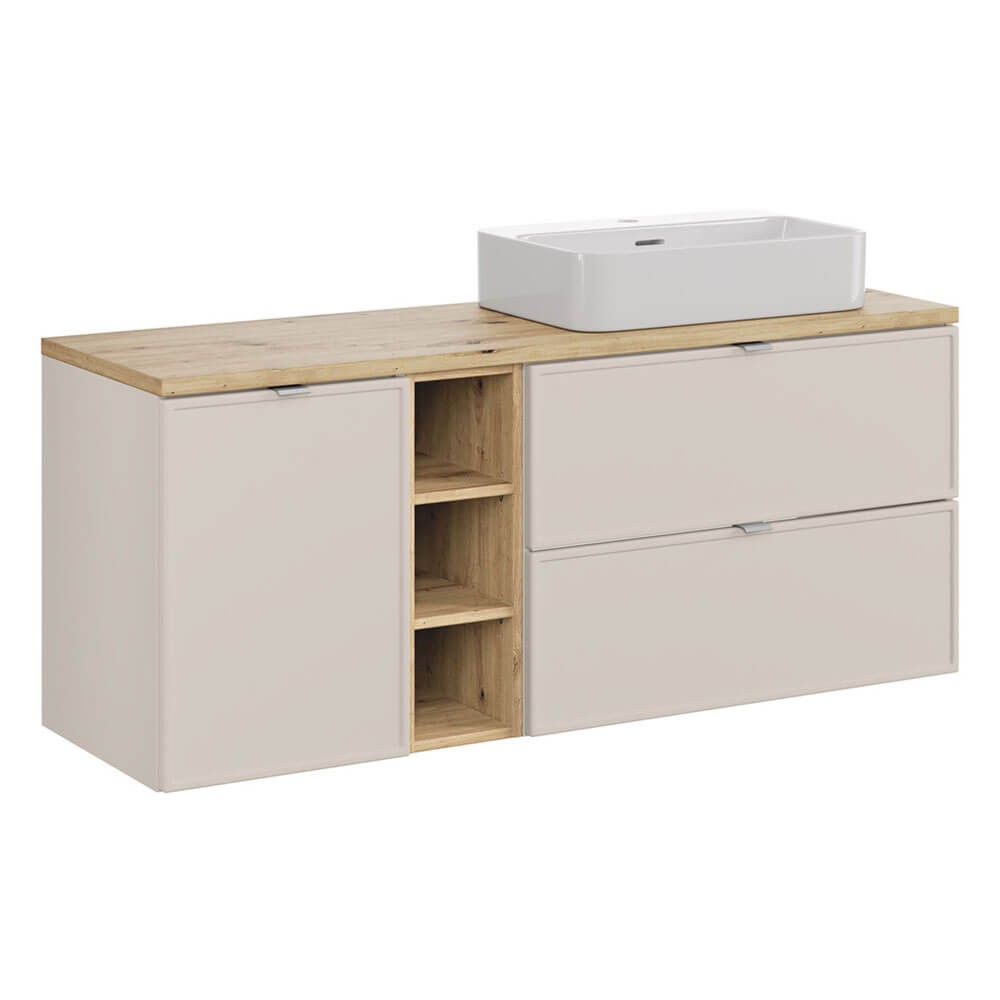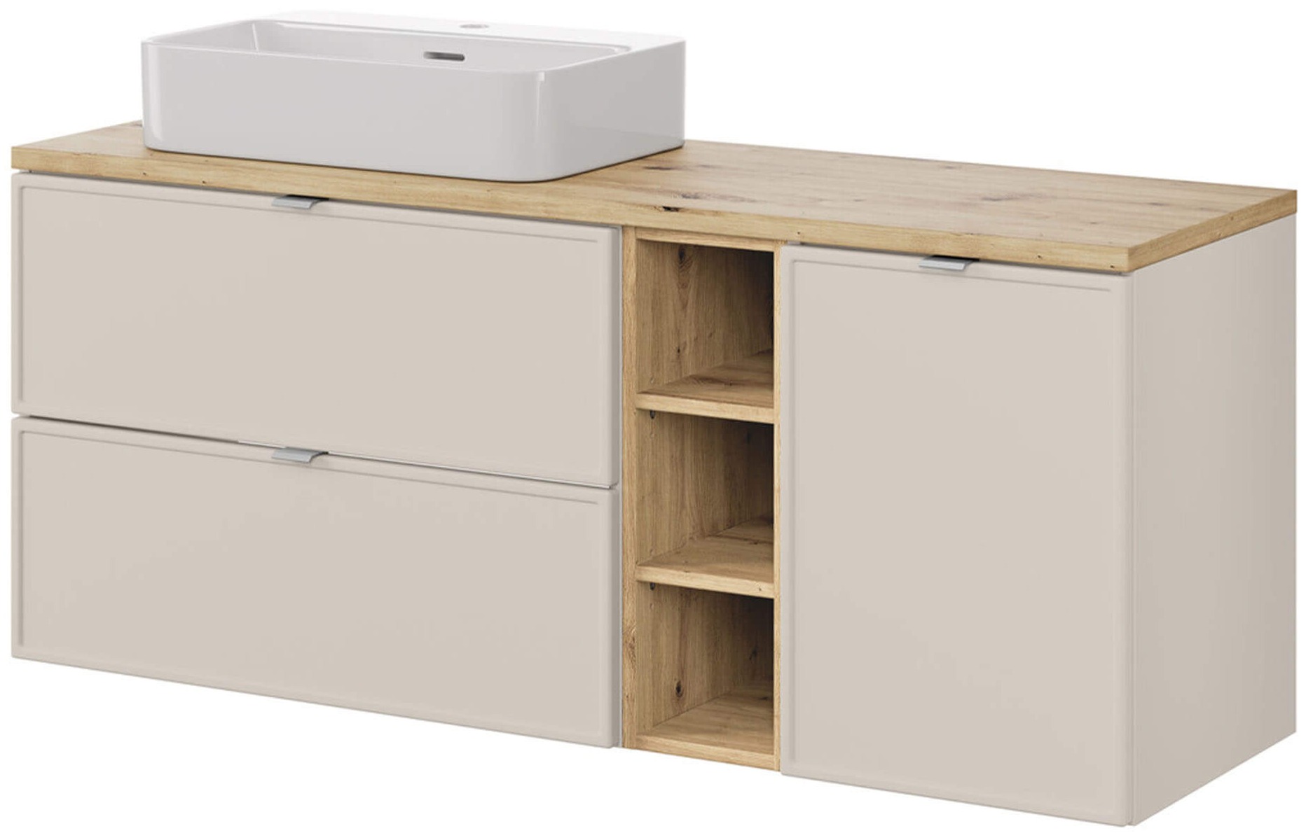 Zestaw meblowy 140cm z blatem i umywalką nablatową Trust | Kolekcja Bella Cashmere | Dąb Artisan, Kaszmirowy Mat
