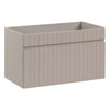 Zestaw meblowy 160 cm z blatem, 2 umywalkami nablatowymi Wiki, szafką wysoką i lustrem z Kolekcji Iconic Cashmere to idealna propozycja dla osób, które cenią sobie elegancki wygląd łazienki połączony z funkcjonalnością. Kaszmirowy mat w połączeniu z ciepłym odcieniem dębu Coast Evoke nadaje wnętrzu niepowtarzalnego charakteru, wprowadzając atmosferę luksusu bez nadmiernej ostentacji. Blat wykonany z litego drewna dębowego podkreśla naturalne usłojenie i dodaje przestrzeni przytulności, a delikatnie frezowane fronty z pionowymi ryflami subtelnie odbijają światło, tworząc efekt głębi i nowoczesnej harmonii. Przestronne szafki o modułowych wymiarach zapewniają dużo miejsca na przechowywanie niezbędnych akcesoriów łazienkowych, a wysoka szafka stanowi praktyczne uzupełnienie każdej aranżacji, ułatwiając utrzymanie porządku. Dwie umywalki nablatowe Wiki idealnie wpisują się w trend minimalistycznych rozwiązań, zapewniając wygodę użytkowania i optymalizując przestrzeń wokół strefy umywalkowej. Precyzyjnie wykonane detale oraz wyważone proporcje sprawiają, że zestaw Iconic Cashmere staje się centralnym punktem każdej łazienki, nadając jej elegancki, ponadczasowy styl. Dzięki łatwej pielęgnacji matowe powierzchnie i odporne materiały zachowują swój estetyczny wygląd przez lata, co przekłada się na długotrwałe zadowolenie z użytkowania. Wybierając ten zestaw mebli łazienkowych, inwestujesz w połączenie wysokiej jakości, komfortu oraz niepowtarzalnej estetyki, które przyciąga uwagę i sprawia, że codzienna toaleta staje się przyjemnością.