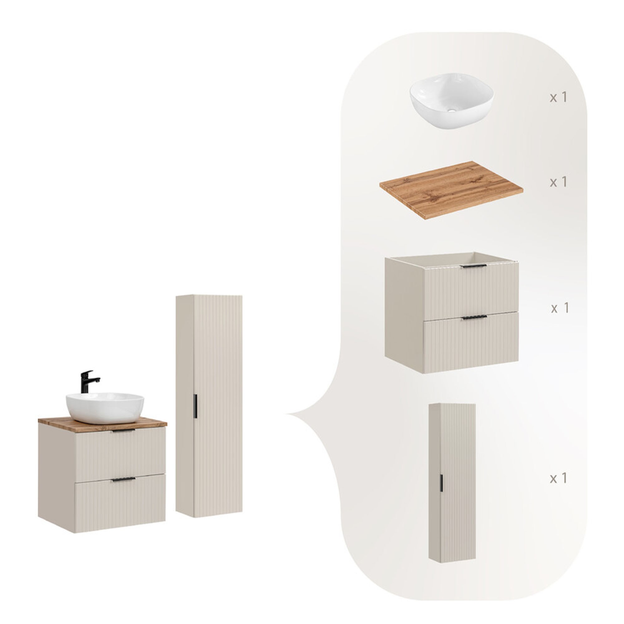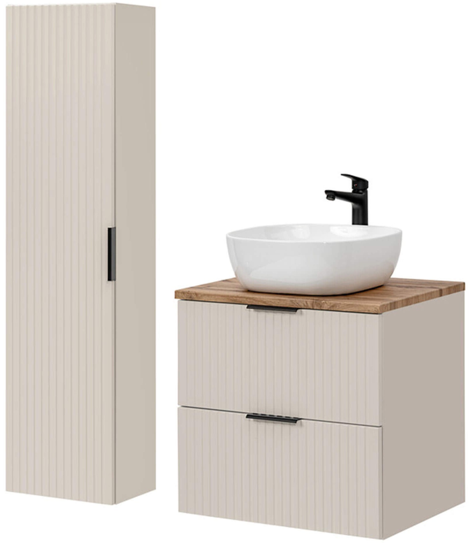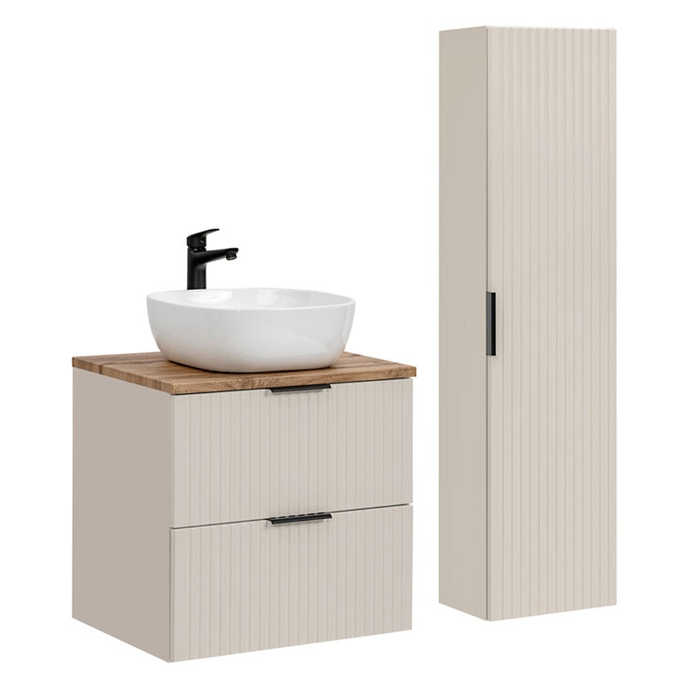 Zestaw meblowy 60cm z blatem, 1 umywalką nablatową Smile i Szafką wysoką | Kolekcja ADEL CASHMERE | Dąb Wotan, Kaszmirowy Mat