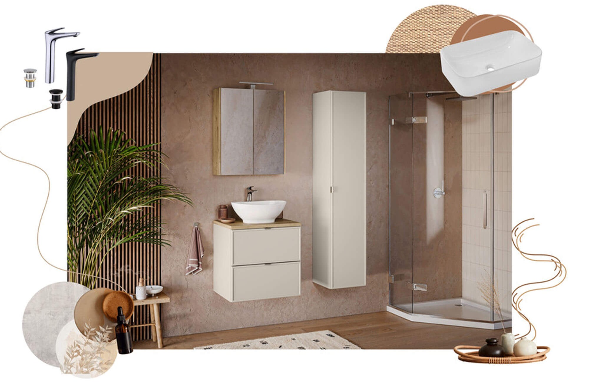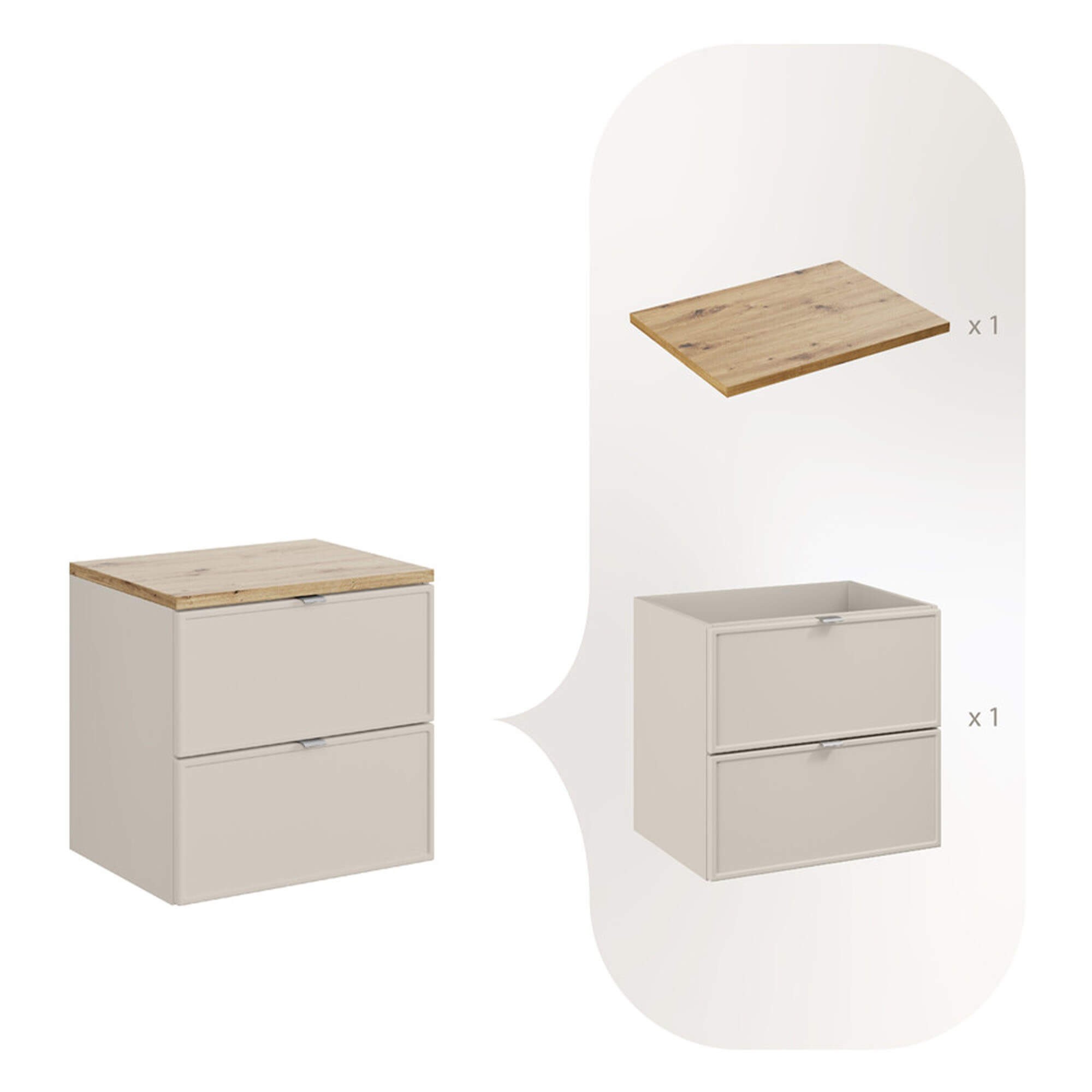 Zestaw meblowy 60cm z blatem | Kolekcja Bella Cashmere | Dąb Artisan, Kaszmirowy Mat