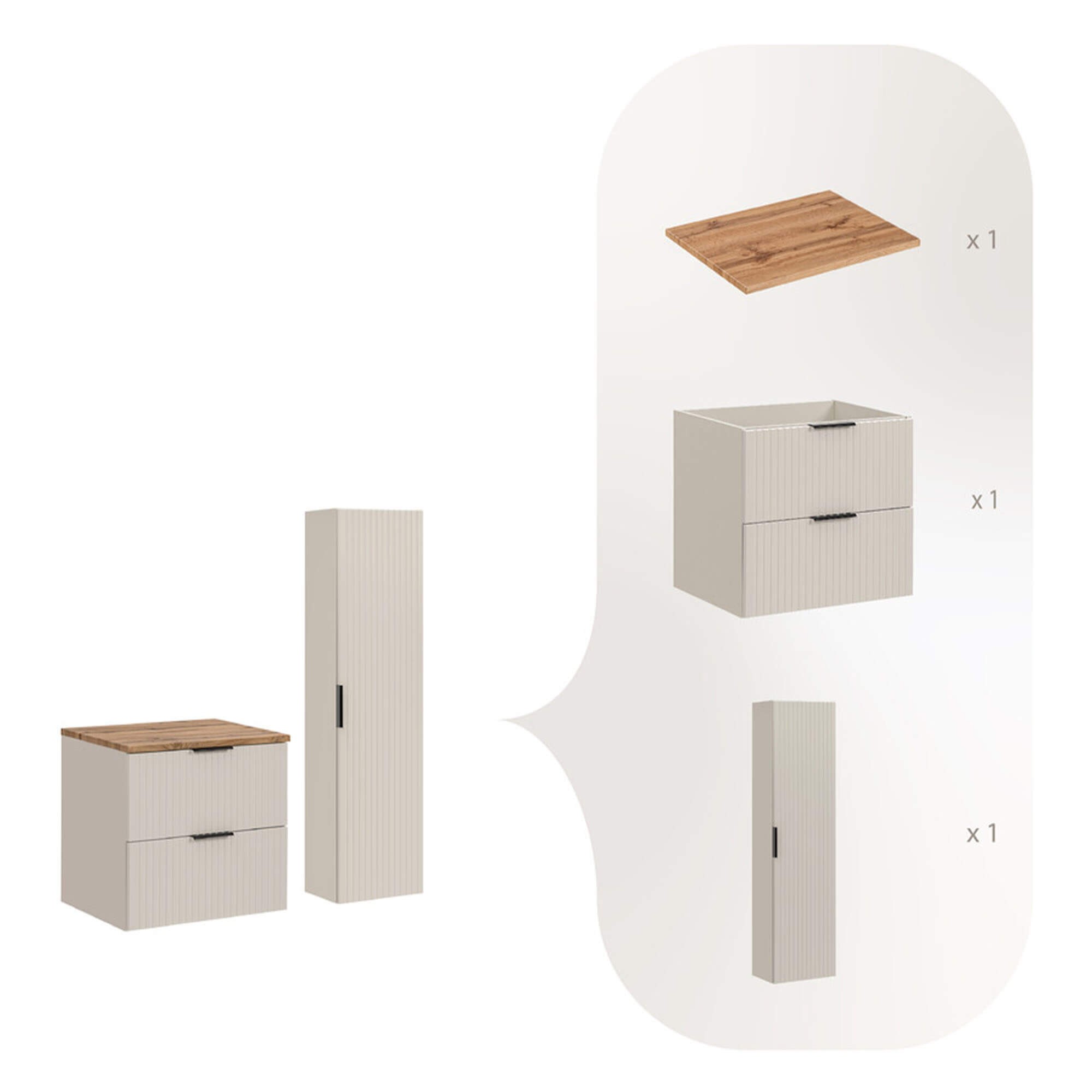 Zestaw meblowy 60cm z blatem i Szafką wysoką | Kolekcja ADEL CASHMERE | Dąb Wotan, Kaszmirowy Mat