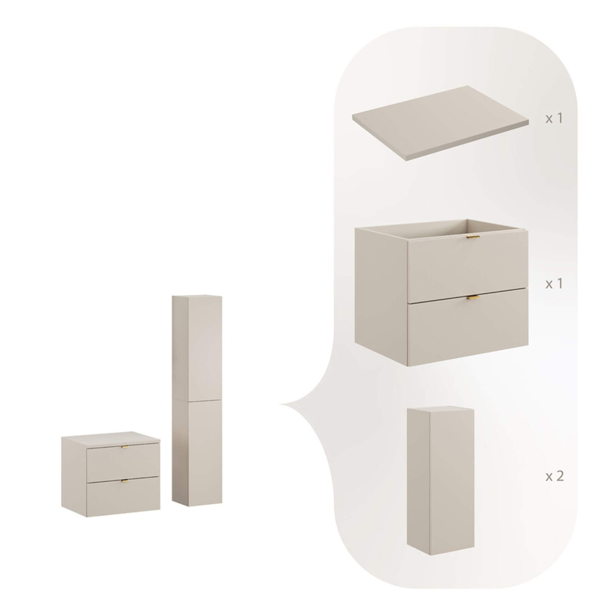 Zestaw meblowy 60cm z blatem i Szafką wysoką | Kolekcja Dalia Cashmere | Kaszmirowy Mat