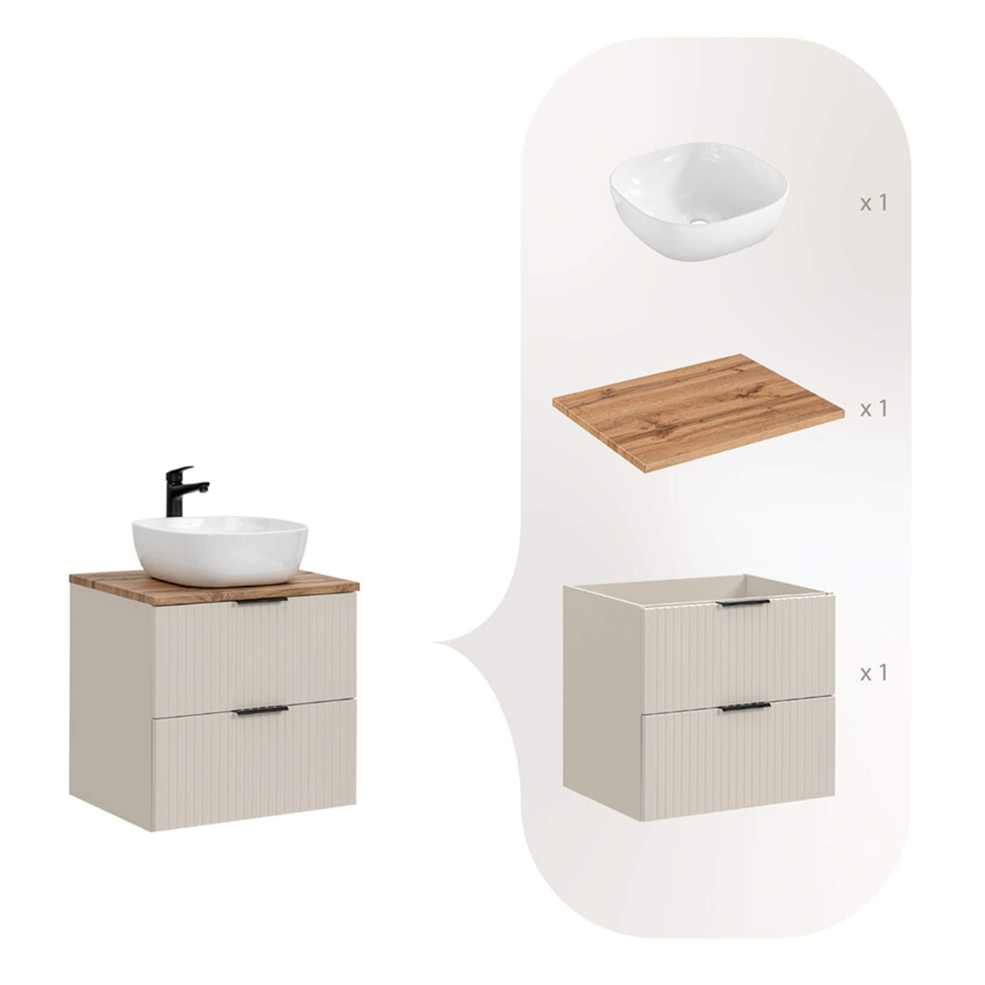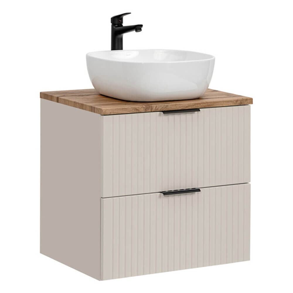 Zestaw meblowy 60cm z blatem i umywalką nablatową Smile | Kolekcja ADEL CASHMERE | Dąb Wotan, Kaszmirowy Mat
