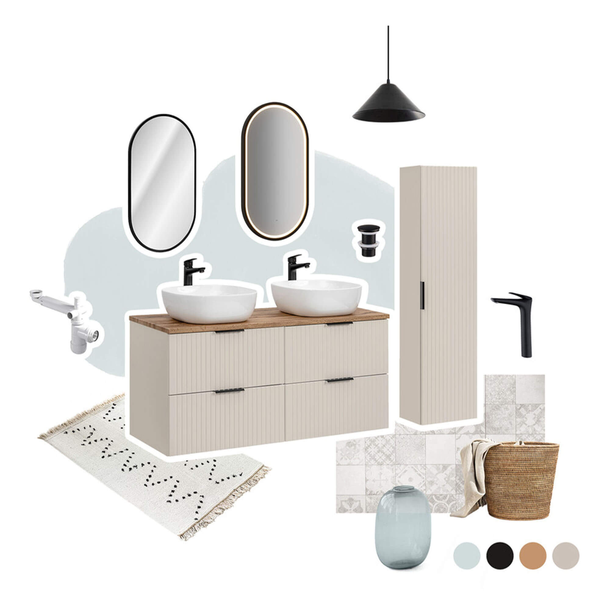 Zestaw meblowy Adel Cashmere SET-ADC B Wotan 60 cm ze stylową umywalką Smile 40 to idealne połączenie nowoczesnego designu i ponadczasowej elegancji, które odmieni wygląd każdej łazienki. Korpus i fronty w ciepłym odcieniu kaszmiru mat zostały pokryte trwałą płytą laminowaną, odporną na wilgoć i zarysowania, a pionowe frezowania nadają im wyjątkowej głębi i subtelnej dynamiki. Blat o optymalnej głębokości 46 cm wykonano z wysokiej jakości płyty MDF, wykończonej naturalnym fornirem dębu Wotan – ten szlachetny akcent doda wnętrzu przytulności i ciepła. Biała umywalka nablatowa Smile 40 DP z ceramiki sanitarnej emanuje nowoczesną lekkością, a jej ergonomiczny kształt ułatwia codzienną pielęgnację. Praktyczne szuflady na metalowych prowadnicach z pełnym wysuwem i cichym domykiem pomieszczą wszystkie niezbędne akcesoria łazienkowe, gwarantując komfort użytkowania. Do zestawu dołączono eleganckie uchwyty w trzech wykończeniach – złotym połysku, czarnym macie lub chromie połysku – dzięki czemu łatwo dopasujesz je do swojego stylu. Solidny montaż ścienny na stalowych wspornikach zapewnia stabilność, a starannie zabezpieczone krawędzie i obrzeża przetrwają lata intensywnego użytkowania. Wybierz zestaw meblowy SET-ADC B Wotan 60 cm z umywalką Smile 40 i ciesz się harmonijną przestrzenią łazienki, w której funkcjonalność spotyka się z luksusowym wykończeniem.