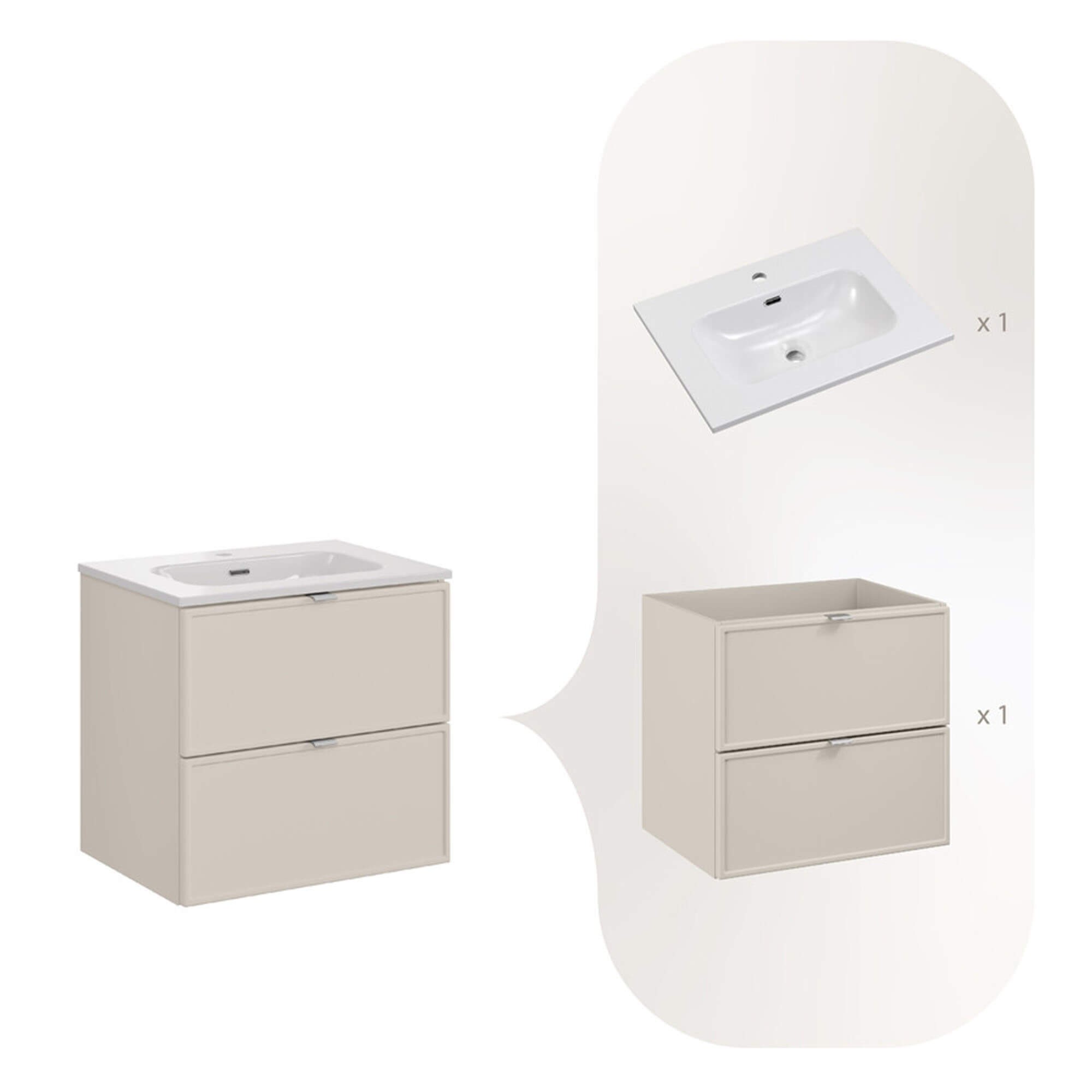 Zestaw meblowy 60cm z umywalką meblową FLY | Kolekcja Bella Cashmere | Kaszmirowy Mat