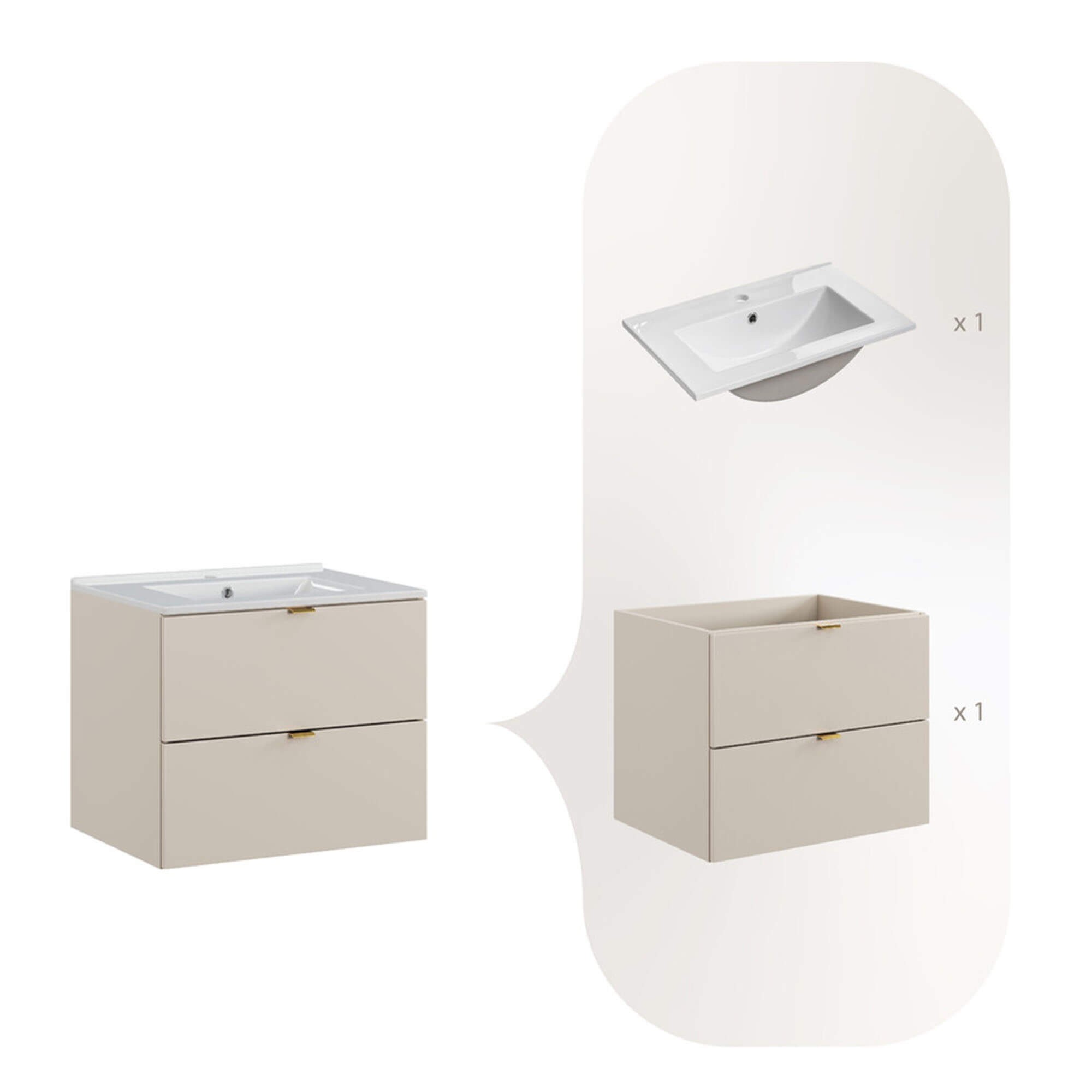 Zestaw meblowy 60cm z umywalką meblową Lava | Kolekcja Dalia Cashmere | Kaszmirowy Mat