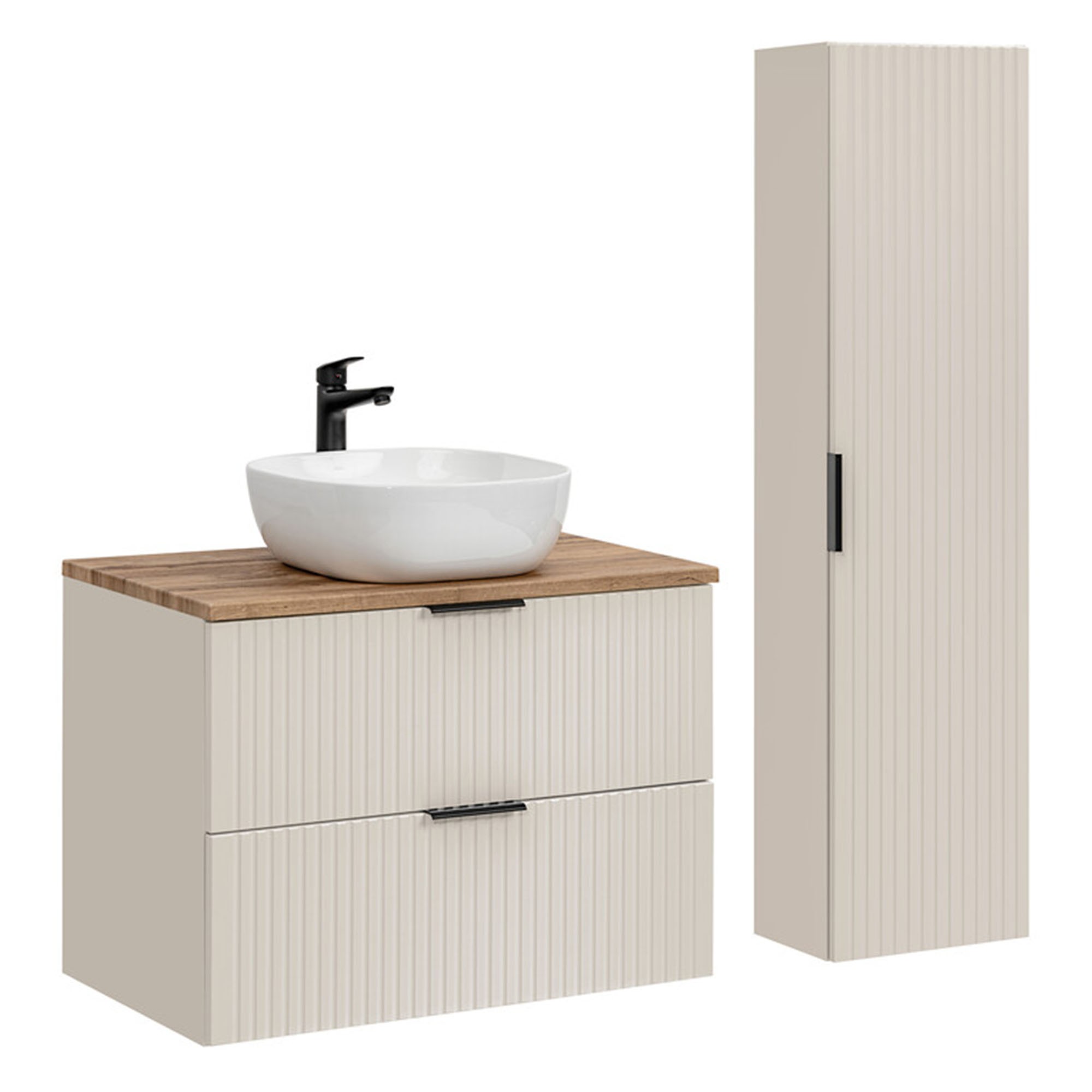Zestaw meblowy 80cm z blatem, 1 umywalką nablatową Smile i Szafką wysoką | Kolekcja ADEL CASHMERE | Dąb Wotan, Kaszmirowy Mat