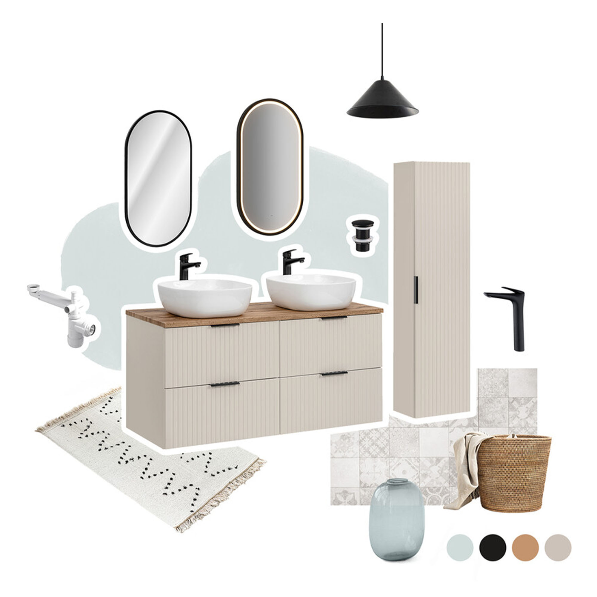 Zestaw meblowy 80 cm z blatem w dekorze dąb Wotan i korpusem w odcieniu kaszmirowy mat to propozycja, która odmieni wnętrze każdej łazienki, łącząc skandynawską lekkość z przytulnym ciepłem naturalnego drewna. Matowa płyta laminowana gwarantuje odporność na wilgoć i trwałość wykończenia, a frezowane, pionowe ryfle na frontach nadają meblom subtelnej głębi i wyjątkowego charakteru. Solidny blat o strukturze dębu Wotan stanowi idealne podparcie dla umywalki, a szuflada na metalowych prowadnicach z pełnym wysuwem i cichym domykiem pozwala na wygodne przechowywanie wszystkich łazienkowych akcesoriów. Dzięki ściennemu montażowi na stalowych wspornikach zestaw prezentuje się lekko, a jednocześnie zapewnia stabilność i bezpieczeństwo użytkowania. Obrzeża zabezpieczono specjalną powłoką odporną na promieniowanie UV, wilgoć i zarysowania, co sprawia, że meble zachowują nienaganny wygląd mimo intensywnej eksploatacji. Drobne, metalowe uchwyty w wariantach złotego połysku, czarnego matu lub chromu pozwalają dowolnie dopasować zestaw do stylu Twojej łazienki, a zaokrąglone krawędzie podkreślają dbałość o detale. Wybierz zestaw 80 cm z blatem dąb Wotan i kaszmirowym matowym korpusem, by cieszyć się niepowtarzalnym designem i funkcjonalnością na lata.