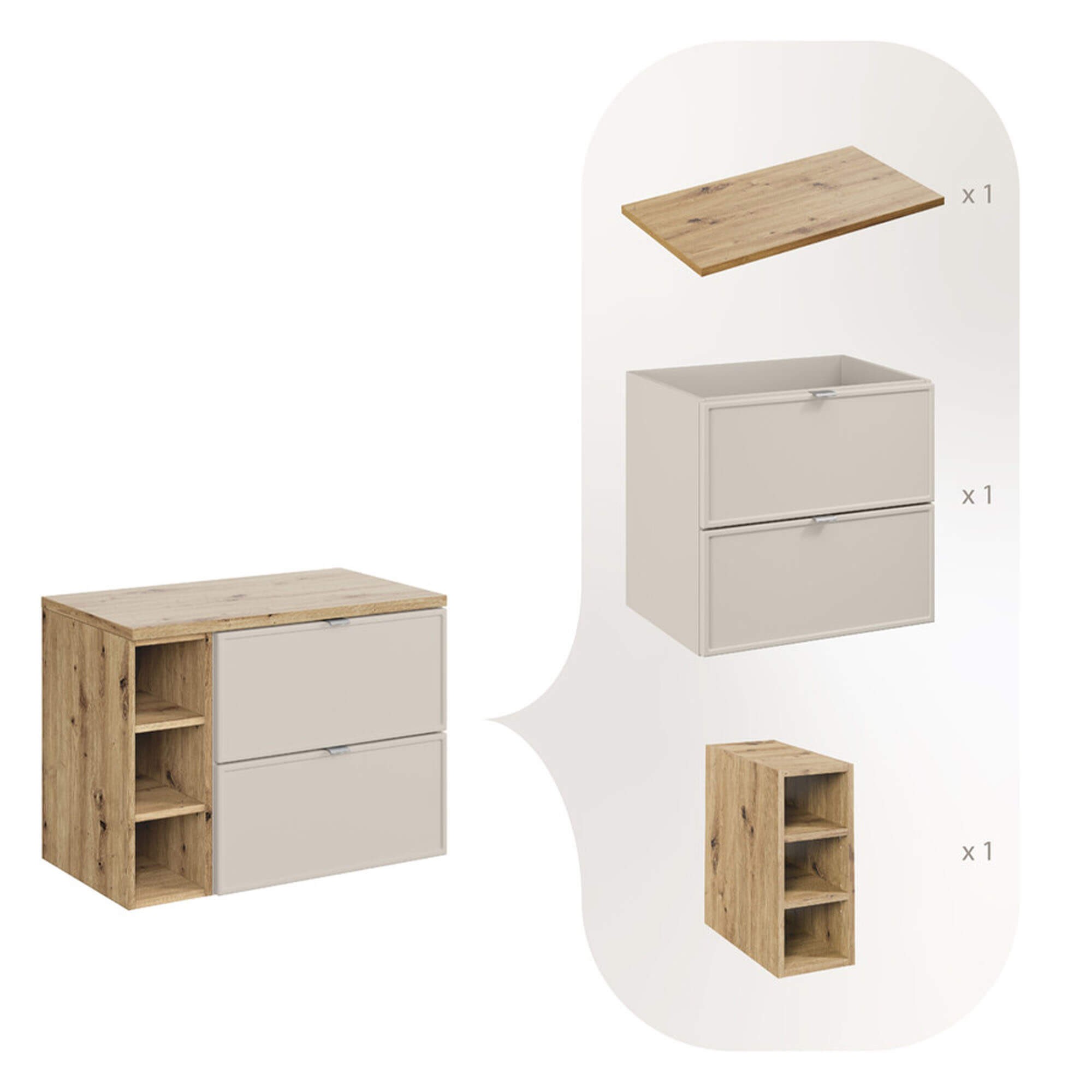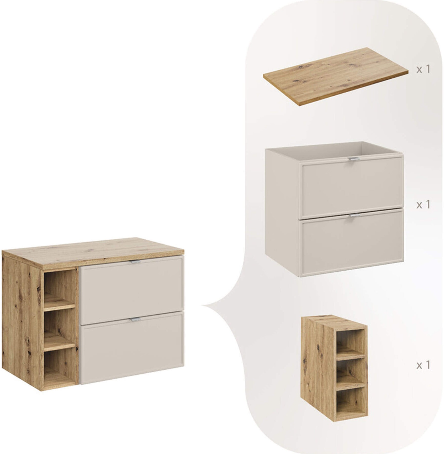Zestaw meblowy 80cm z blatem | Kolekcja Bella Cashmere | Dąb Artisan, Kaszmirowy Mat