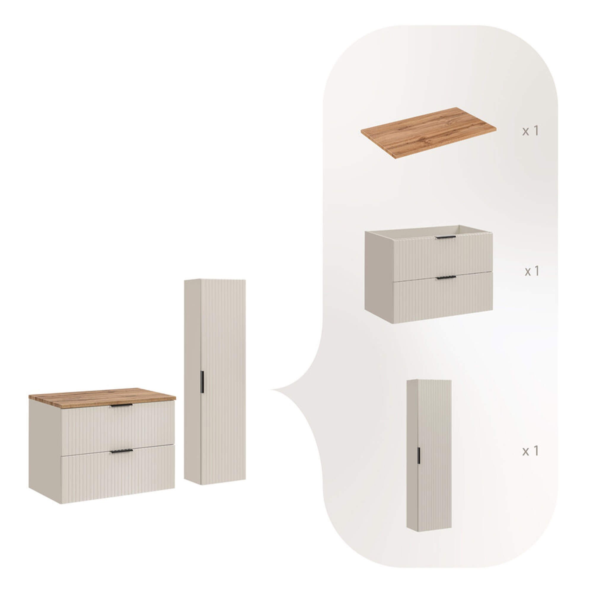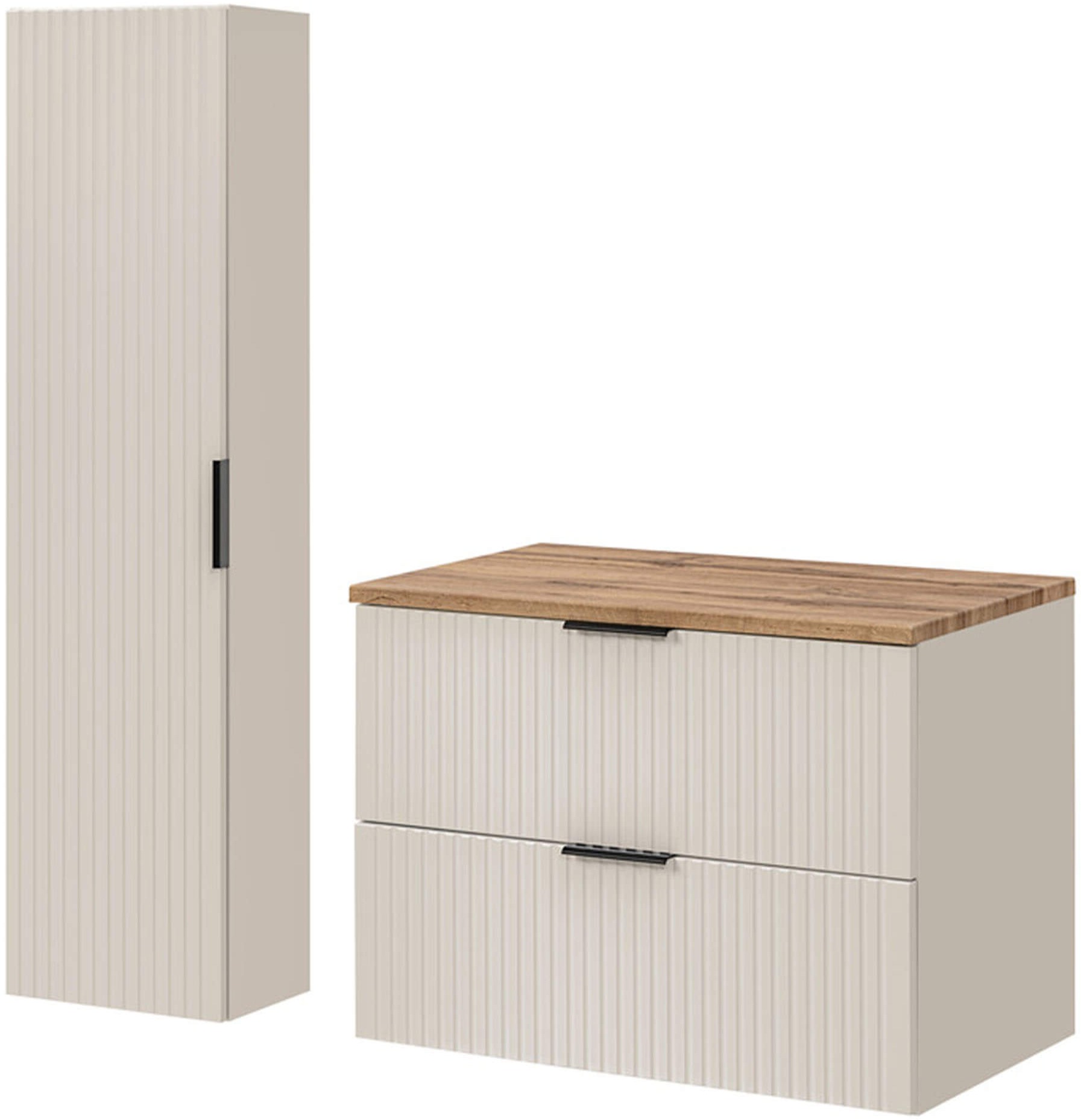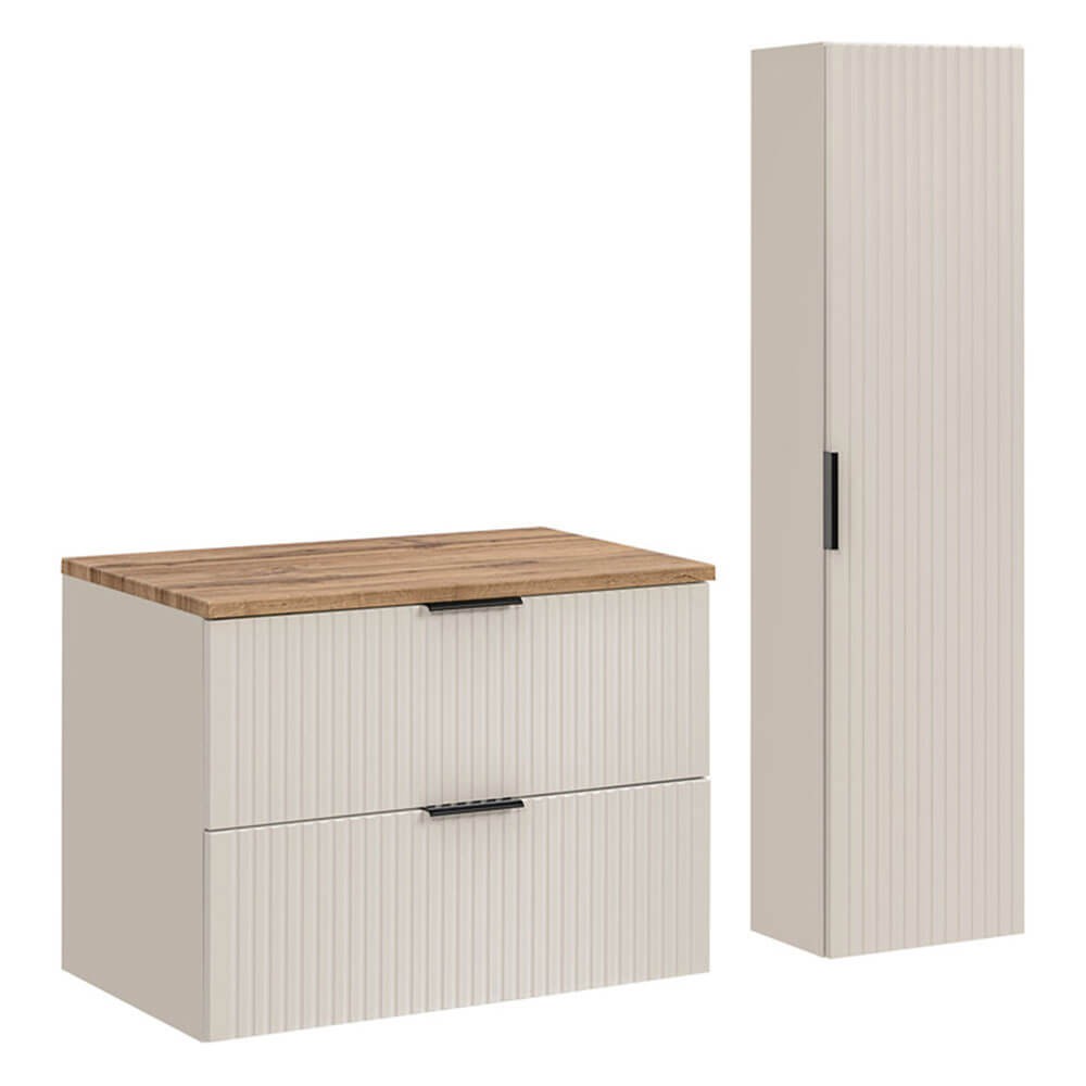 Zestaw meblowy 80cm z blatem i Szafką wysoką | Kolekcja ADEL CASHMERE w kolorze Dąb wotan, Kaszmirowy mat