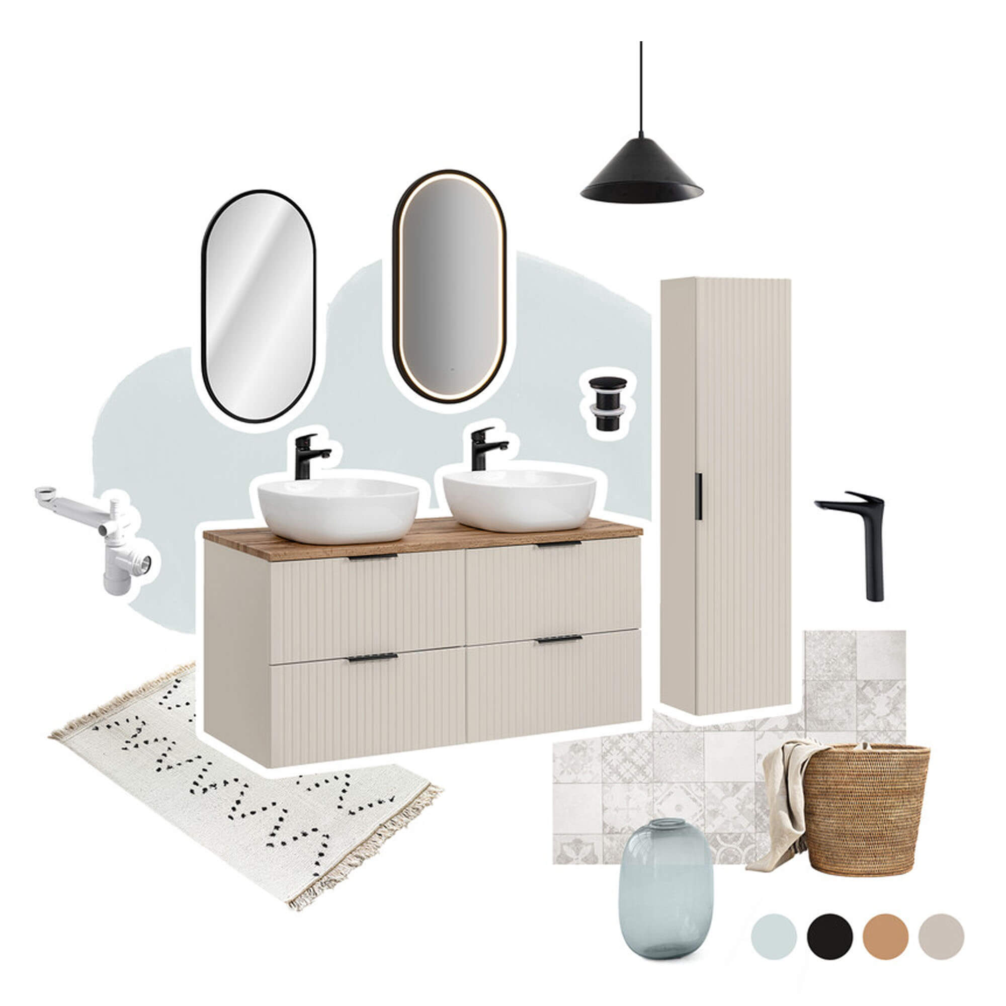 Zestaw meblowy 80 cm Adel Cashmere w połączeniu dekoru Dąb Wotan i odcienia Kaszmirowy Mat to propozycja, która nada Twojej łazience wyjątkowy charakter dzięki harmonijnemu zestawieniu naturalnego ciepła drewna z nowoczesną, matową elegancją. Solidny blat o wyrazistej strukturze dębu Wotan jest doskonałą bazą dla stylowej aranżacji, a korpusy i fronty wykonane z wodoodpornej płyty laminowanej w kaszmirowym macie gwarantują odporność na wilgoć i łatwość w utrzymaniu czystości. Subtelne, pionowe frezowania na frontach wprowadzają do wnętrza subtelną grę światła i cienia, podkreślając przy tym wysmakowaną teksturę mebla. Stabilny, ścienny montaż na stalowych wspornikach sprawia, że zestaw zdaje się niemal „lewitować”, dodając przestrzeni lekkości. Przemyślany projekt uwzględnia pojemną szufladę z pełnym wysuwem i systemem cichego domyku, a wysoka szafka z praktycznymi półkami pozwala maksymalnie wykorzystać miejsce do przechowywania. Metalowe uchwyty w trzech wykończeniach – czarny mat, złoty połysk lub chrom – umożliwiają dopasowanie detali do Twojego stylu, podczas gdy obrzeża zabezpieczone powłoką odporną na zarysowania, promieniowanie UV i wilgoć zachowają nienaganny wygląd mebla na lata. Wybierając zestaw Adel Cashmere Dąb Wotan/Kaszmirowy Mat, inwestujesz w połączenie luksusu, trwałości i funkcjonalności, które całkowicie odmieni Twoją łazienkę.