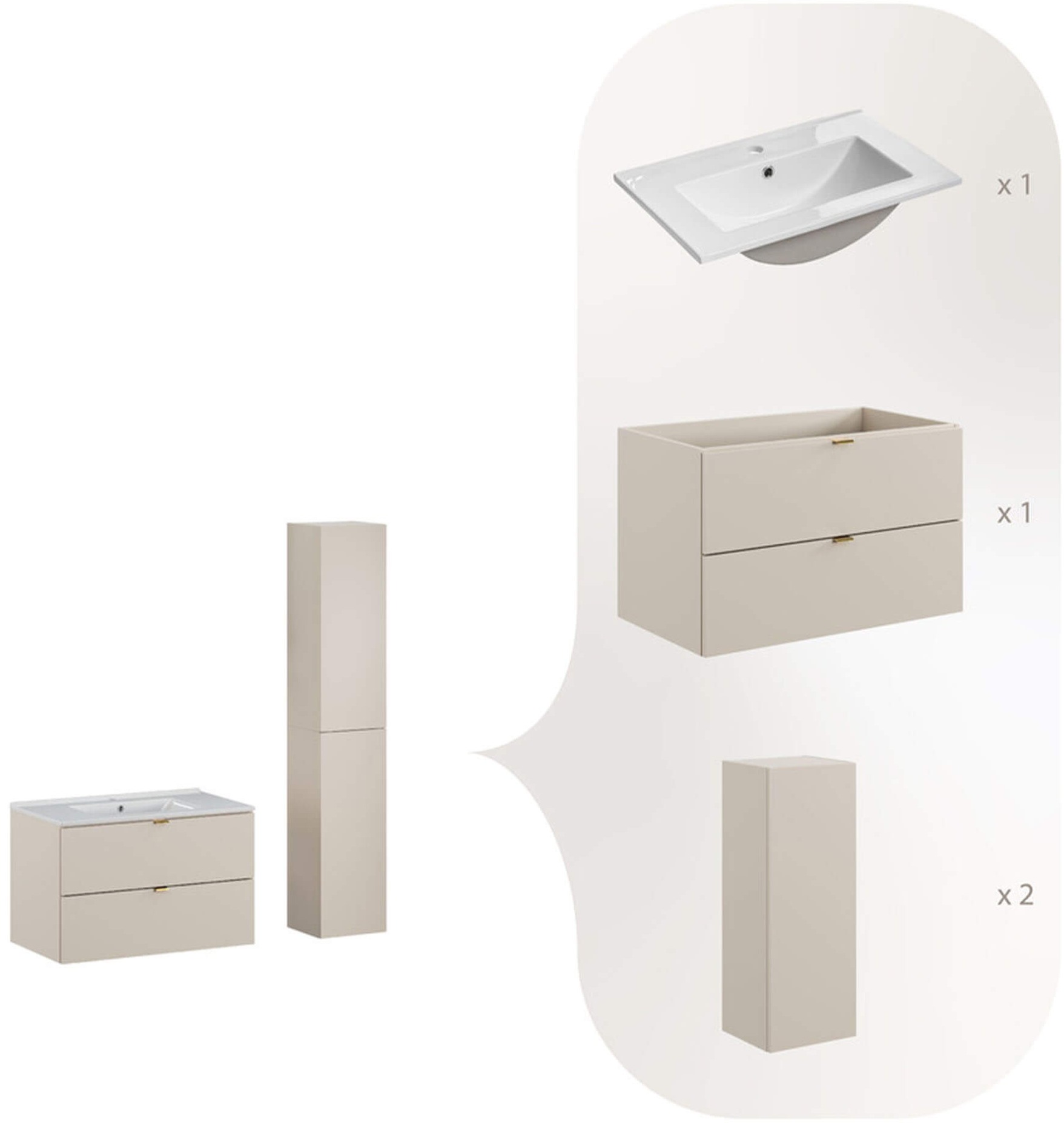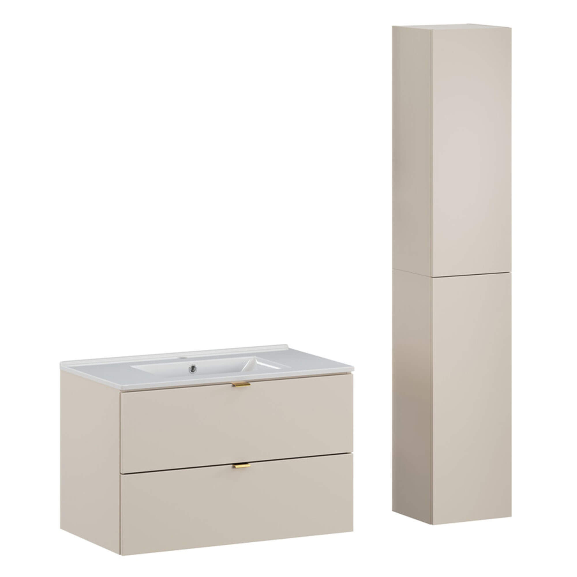 Zestaw meblowy 80cm z umywalką meblową Lava i szafką wysoką | Kolekcja Dalia Cashmere | Kaszmirowy Mat